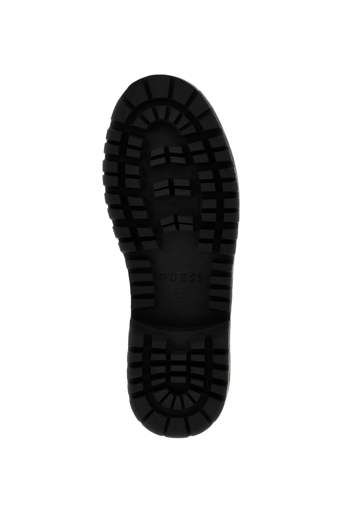 Klasik postal silüetini lüks ve modern detaylarla birleştiren bu bot, stil sahibi bir duruş sergiler. Siyah suni deri gövde, yanlardaki tonal kabartma monogram desenli panellerle dokusal bir zenginlik kazanır. Bileği saran ve büyük bir metal harf aksesuarına sahip olan toka detaylı bant, modelin en dikkat çekici unsurudur. Topuktaki altın rengi metal plaka lüks bir vurgu yaparken, kalın traktör tabanı tasarıma güçlü bir karakter katar. İç kısmındaki fermuar ise pratik bir kullanım sunar.