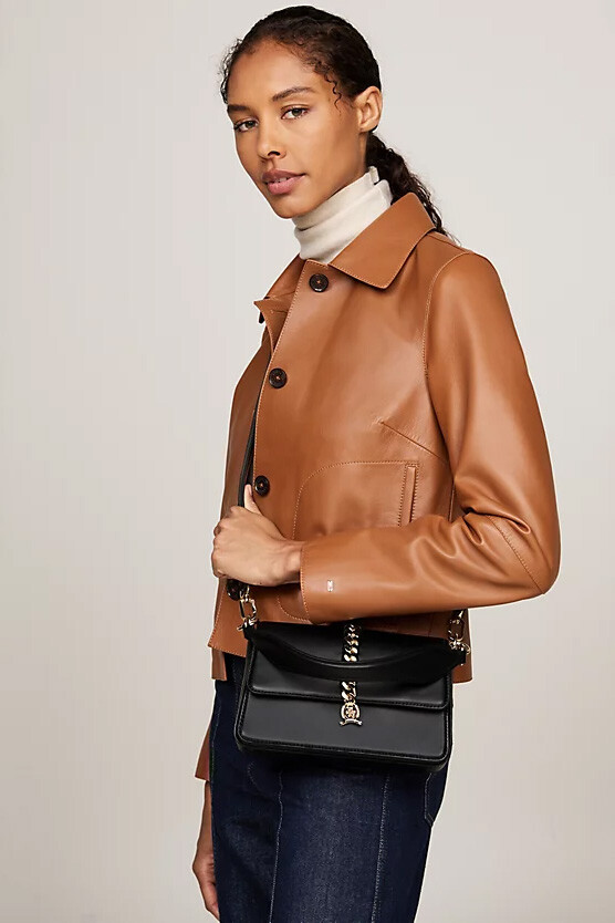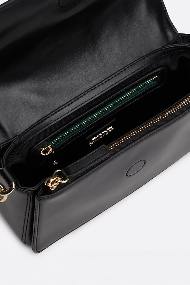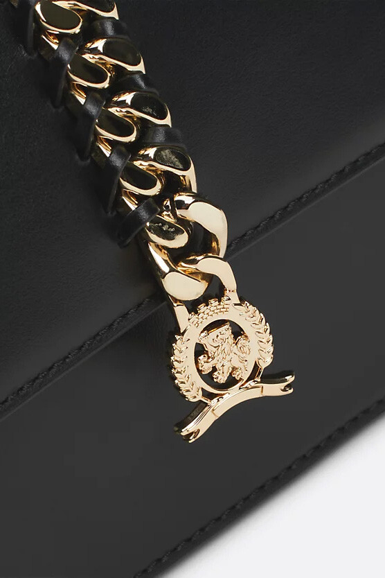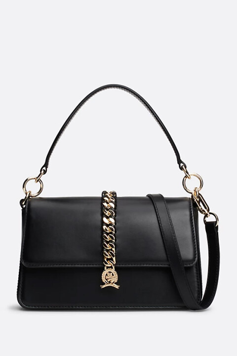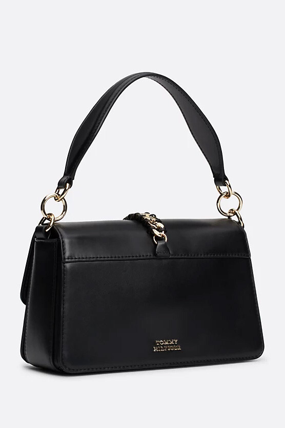 Kadın Örgülü Zincirli Deri Çapraz Çanta - Siyah