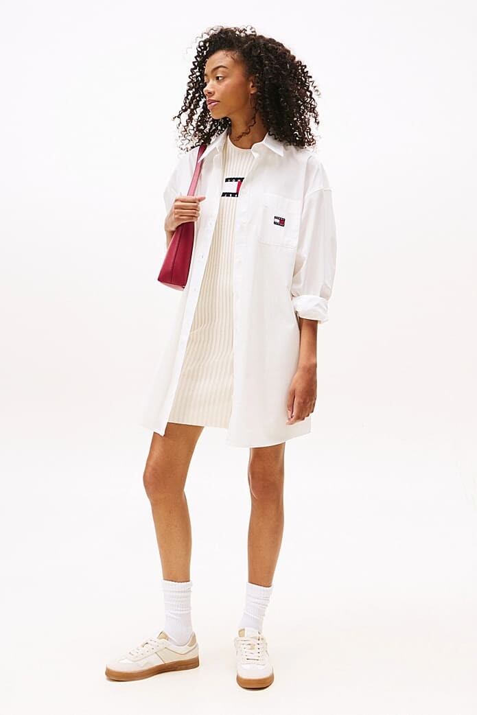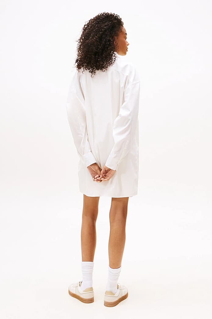 Rahatlığı ve modern stili bir araya getiren bu oversize gömlek elbise, gardırobunuzun en çok yönlü parçalarından biri olacak. %100 pamuklu, nefes alan kumaşıyla gün boyu konfor sunarken, geniş ve dökümlü kalıbı zahmetsiz bir şıklık yaratır. Tek başına bir elbise olarak veya t-shirt'ler üzerine bir ceket gibi giyerek farklı stiller oluşturabilirsiniz. Göğüsteki cebi ve üzerindeki zarif logo detayı, tasarıma klasik bir dokunuş katıyor.
