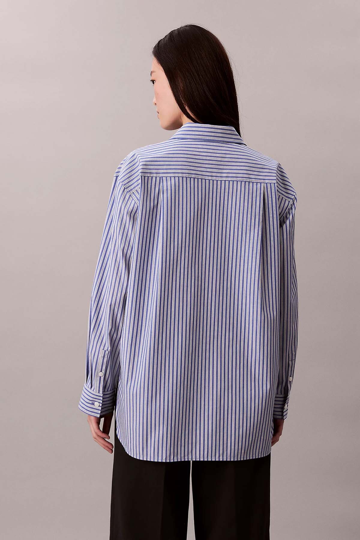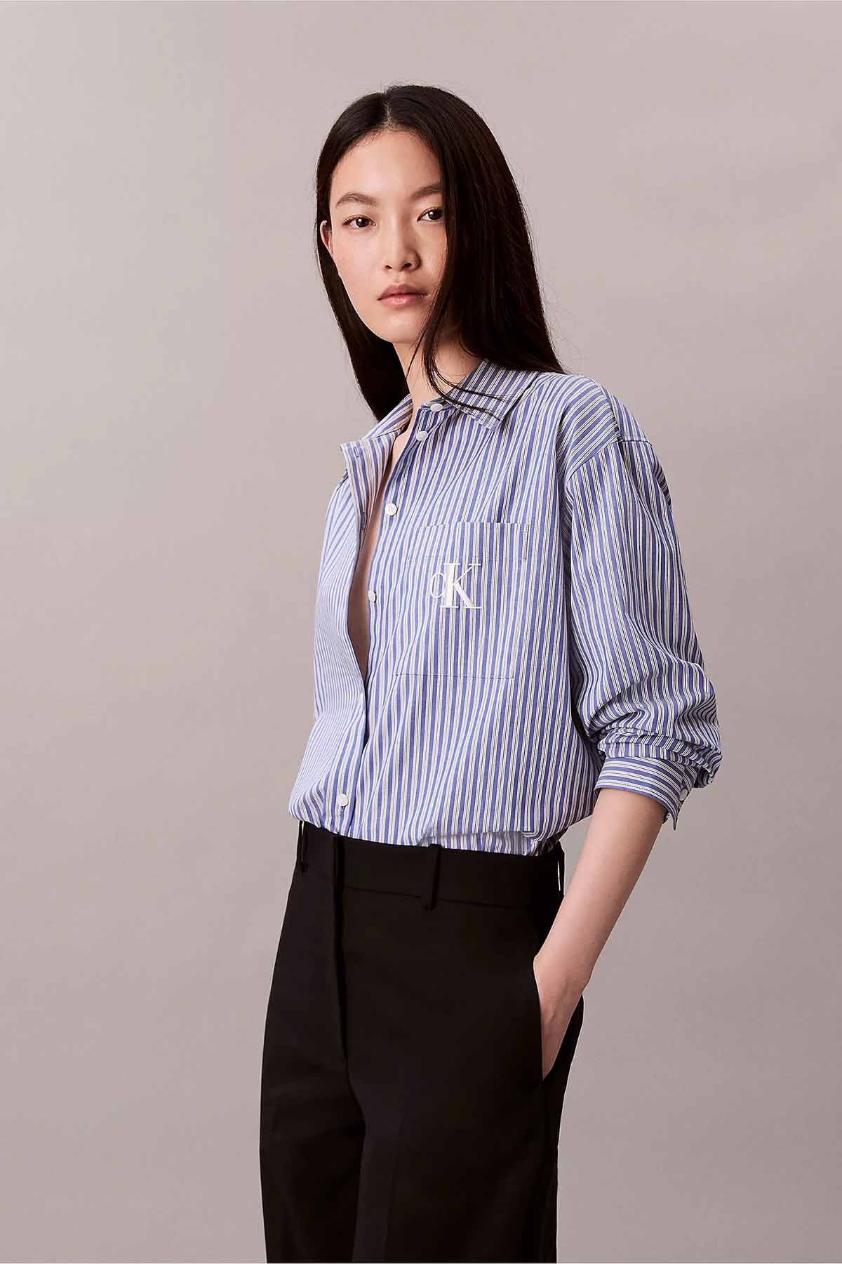 Zamansız ve rahat bir stil sunan bu mavi beyaz çizgili poplin gömlek, oversize fit kalıbıyla modern bir duruş sergiler. Yüksek pamuk içeriği ve hafif elastan karışımı sayesinde hem nefes alır hem de hafif esneklik sağlar (Ancak Esneklik bilgisi 'Yok' olarak belirtilmiştir, bu nedenle metinde esneklik vurgulanmamıştır). Klasik yaka ve manşetli uzun kollu tasarımı, her mevsim rahatça kullanılabilir. Sol göğüs cebinde yer alan kontrast renkli büyük nakışlı amblem, gömleğe özgün bir detay katar. İster jeanlerle spor, ister kumaş pantolonlarla şık bir kombin oluşturun.