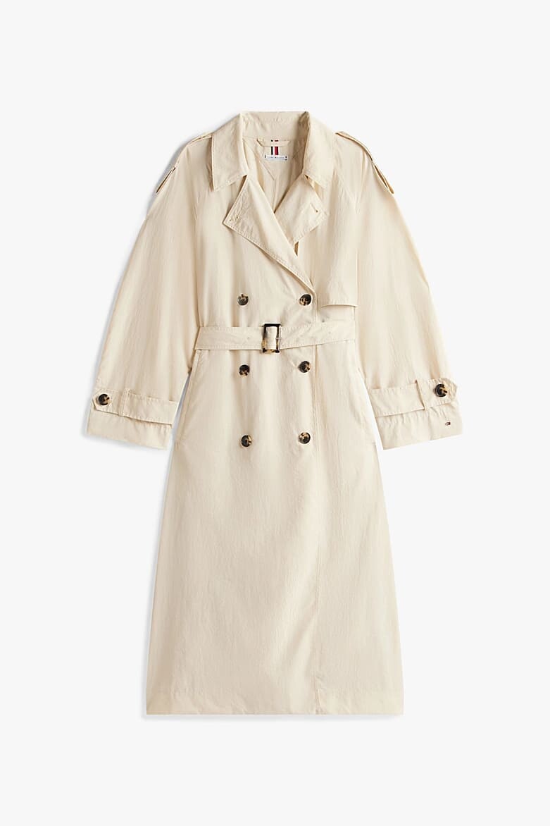 Klasik trençkot silüetini, modern ve oversize bir yorumla buluşturan bu tasarım, gardırobunuza zamansız bir parça katıyor. Hafif polyamid (naylon) kumaşı, mevsim geçişleri için ideal bir koruma sağlarken, dökümlü ve geniş kalıbı zahmetsiz bir şıklık sunar. Kruvaze kapaması, ayarlanabilir kemeri, omuz ve manşetlerdeki apolet detayları gibi ikonik tüm unsurlara sahiptir. Her türlü kombinin üzerine alarak stilinizi bir üst seviyeye taşıyabilirsiniz.