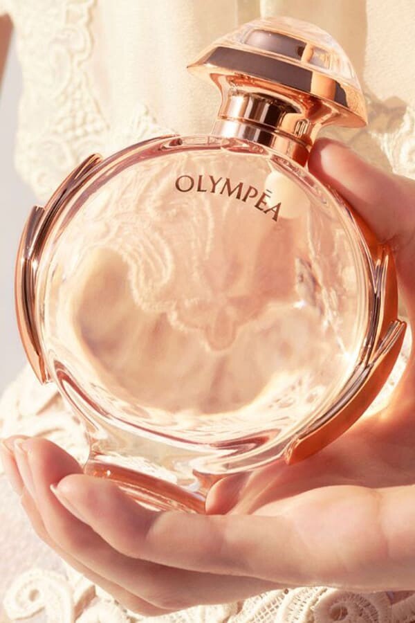 Parfümün şişesi, antik zaferin sembolü olan defne çelengini andıran dairesel ve zarif detaylarla bezenmiştir. Bu tasarım, parfümün ismindeki "Olympea" ve tanrıça konseptiyle mükemmel bir uyum içerisindedir.