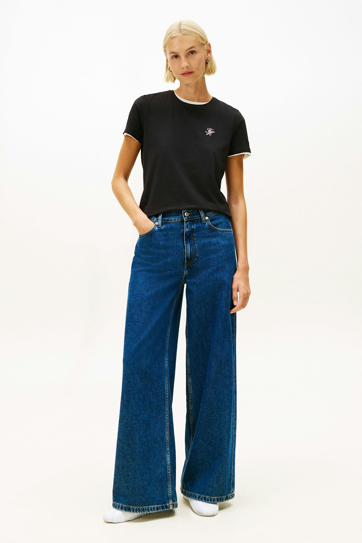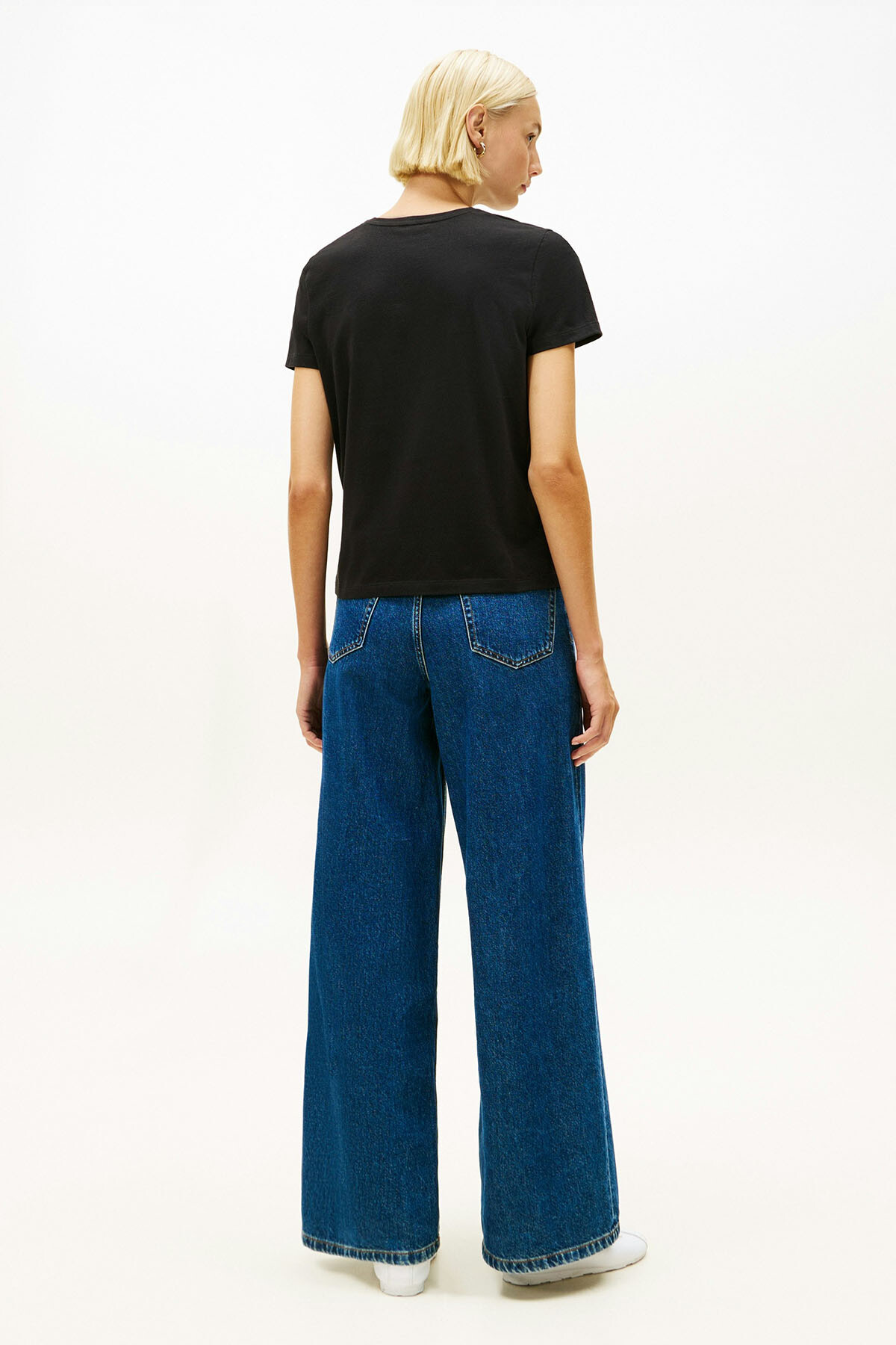 %95 pamuklu esnek dokusuyla cildinize nazikçe uyum sağlayan bu tişört, gün boyu süren ferahlık ve yumuşaklık hissi sunar. Siyah rengin asil duruşunu klasik bisiklet yaka tasarımıyla birleştiren parça, vücudu sıkmayan rahat kalıbı sayesinde hem tek başına hem de ceket içlerinde gardırobunuzun en çok yönlü tamamlayıcısı olur. Sol göğüs üzerindeki zarif el yazısı stili nakış detayı, minimalist tasarıma sofistike bir karakter katarak sade şıklığı ön plana çıkarır.