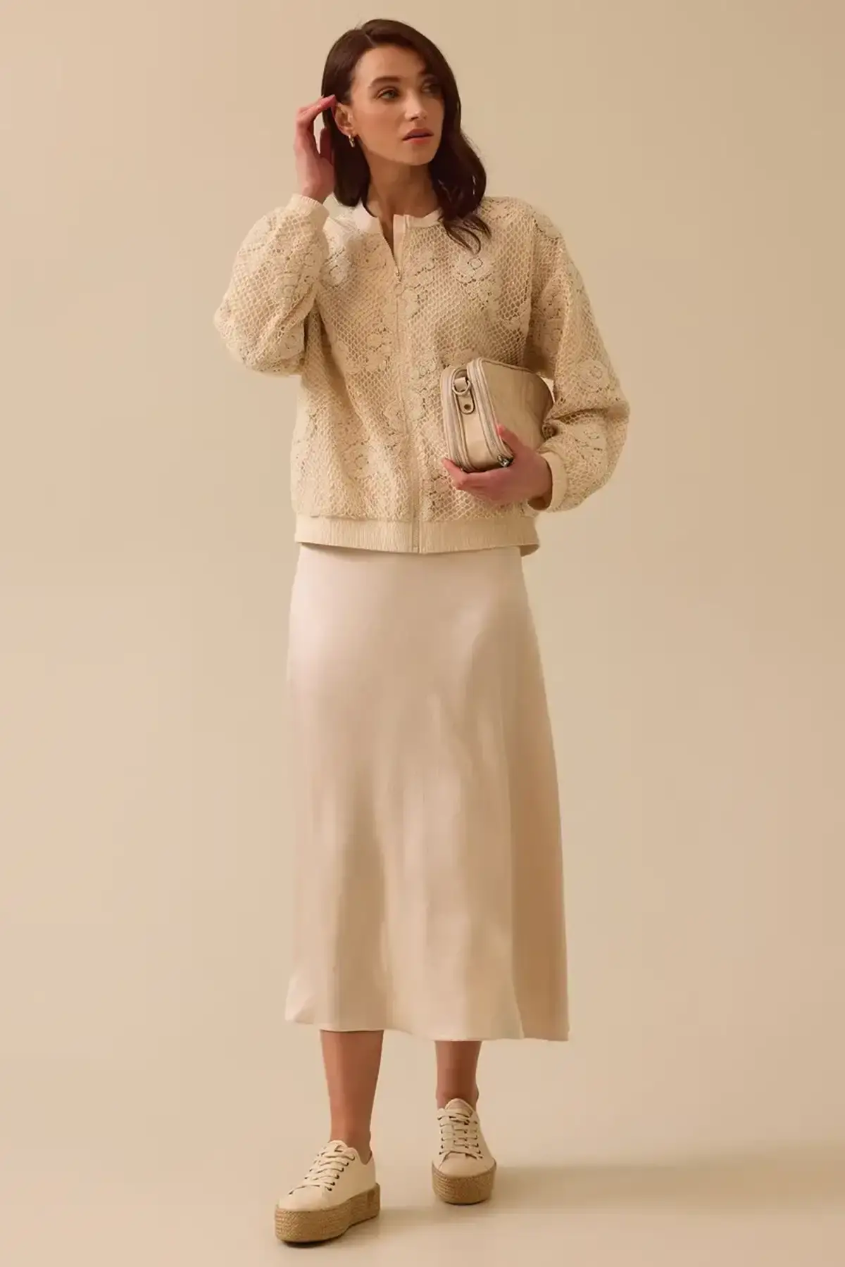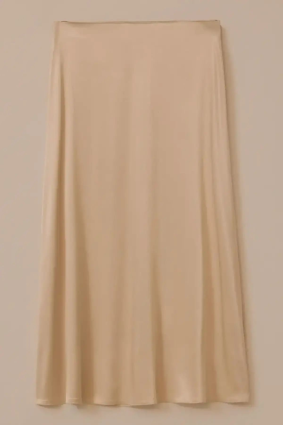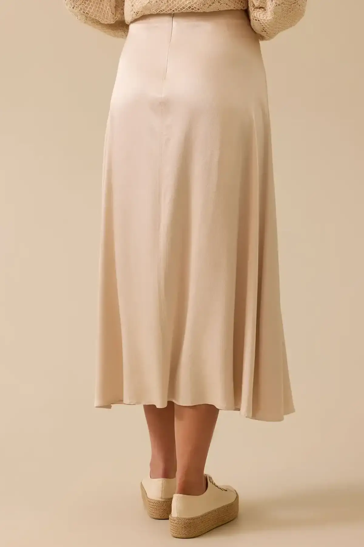 Kadın Parlak Dokulu Saten Uzun Etek - Bej