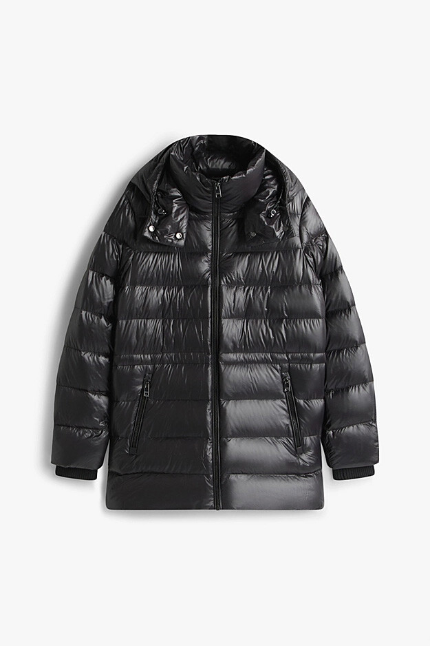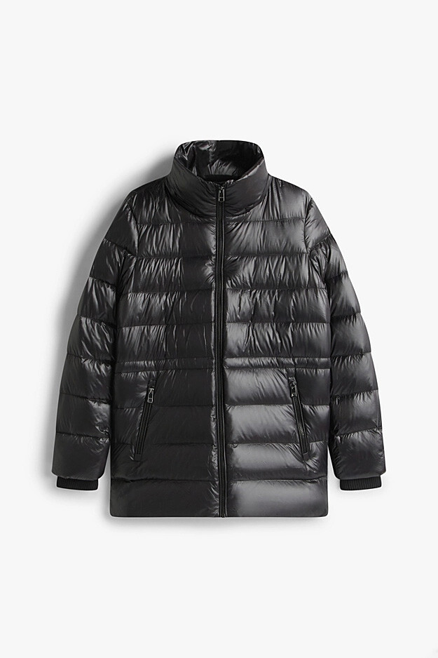 Kış aylarında stilinizden ödün vermeden ısınmanın en lüks yolunu sunan bu siyah şişme mont, parlak yüzeyi ve modern tasarımıyla dikkat çeker. Dolgusu sayesinde hafifliğine rağmen üstün bir sıcaklık sağlarken, su itici özellikli kumaşı yağışlı havalarda kuru kalmanıza yardımcı olur. İhtiyaç duyduğunuzda kullanabileceğiniz çıkarılabilir ipli kapüşonu ve boynu saran dik yaka tasarımı rüzgara karşı ekstra koruma sunar. Ribanalı manşetleri ve fermuarlı cepleriyle hem fonksiyonel hem de şık bir kullanım vadeden bu parça, kış gardırobunuzun vazgeçilmezi olacaktır.