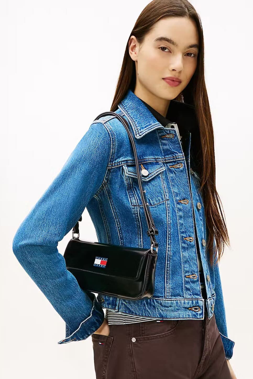 Şehirli kadının dinamik ve cesur stilini yansıtan bu siyah çanta, çarpıcı estetiğini gardırobunuza taşıyor. %100 poliüretan malzemeden üretilen parlak rugan görünümlü dış yüzeyi, ışığı zarifçe yansıtarak gündüzden geceye uzanan kombinlerinize modern bir ışıltı katar. Minimalist dikdörtgen formu, kapağın tam ortasında yer alan ikonik "Tommy Jeans" logo yamasıyla hareketlendirilerek markanın genç ve retro ruhunu vurgular. 13x23 cm'lik kompakt boyutları, telefon ve cüzdan gibi temel ihtiyaçlarınız için ideal bir alan sunarken, 30 cm'lik askı boyu çantayı omzunuzda şık bir şekilde taşımanıza olanak tanır.