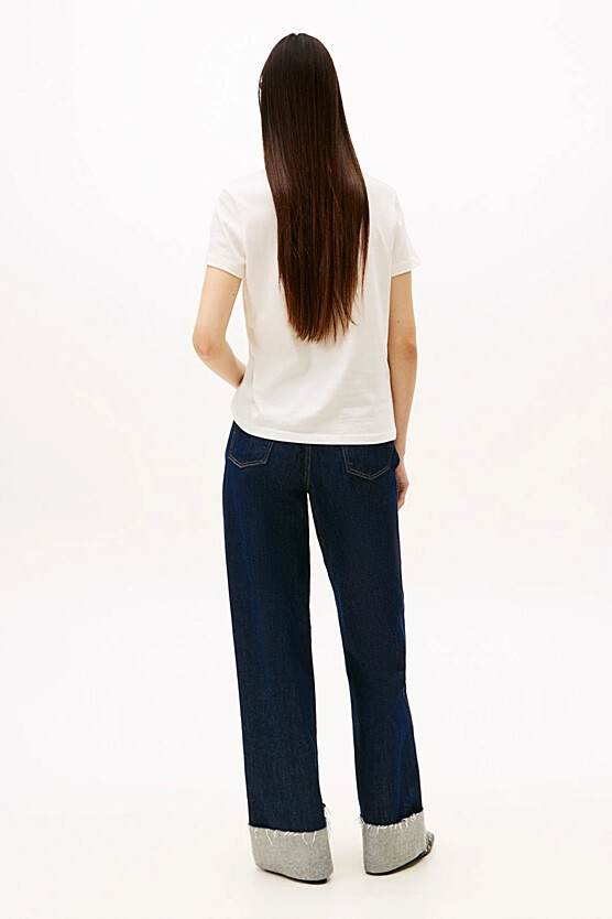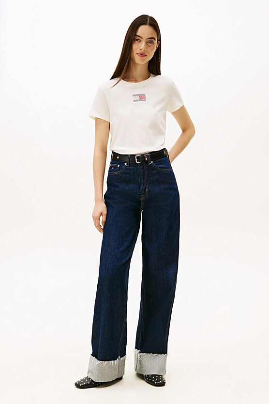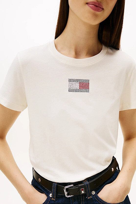 Saf pamuklu jarse kumaşın yumuşak dokusunu teninizde hissettiren bu ekru T-shirt, günlük stilinize ışıltılı bir dokunuş katıyor. Klasik bisiklet yaka tasarımı ve vücudu sıkmayan rahat kalıbı ile gün boyu konfor sunar. Göğüs kısmında yer alan taş işlemeli (diamanté) bayrak logosu, sade tasarıma hareket katarak ürünü sıradan bir temel parçadan ayırır. Hem jeanlerle hem de eteklerle kombinleyerek sportif şıklığı zahmetsizce yakalayabilirsiniz.