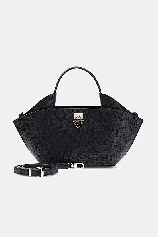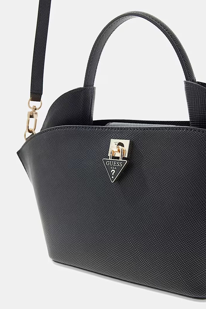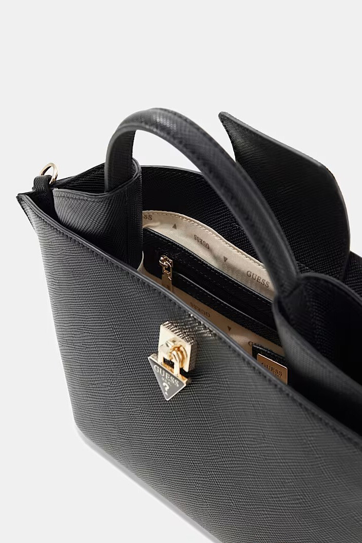 Tasarım & Ekstra Detay: Hızlı erişim sağlayan mıknatıslı (çıtçıt) ana bölme kapaması, güvenli iç fermuarlı cep, özel logolu iç astar, ayarlanabilir ve çıkarılabilir taşıma sapı, ön yüzeyde altın renkli kilit formunda metal donanım, zemin temasını keserek aşınmayı önleyen koruyucu metal alt çiviler