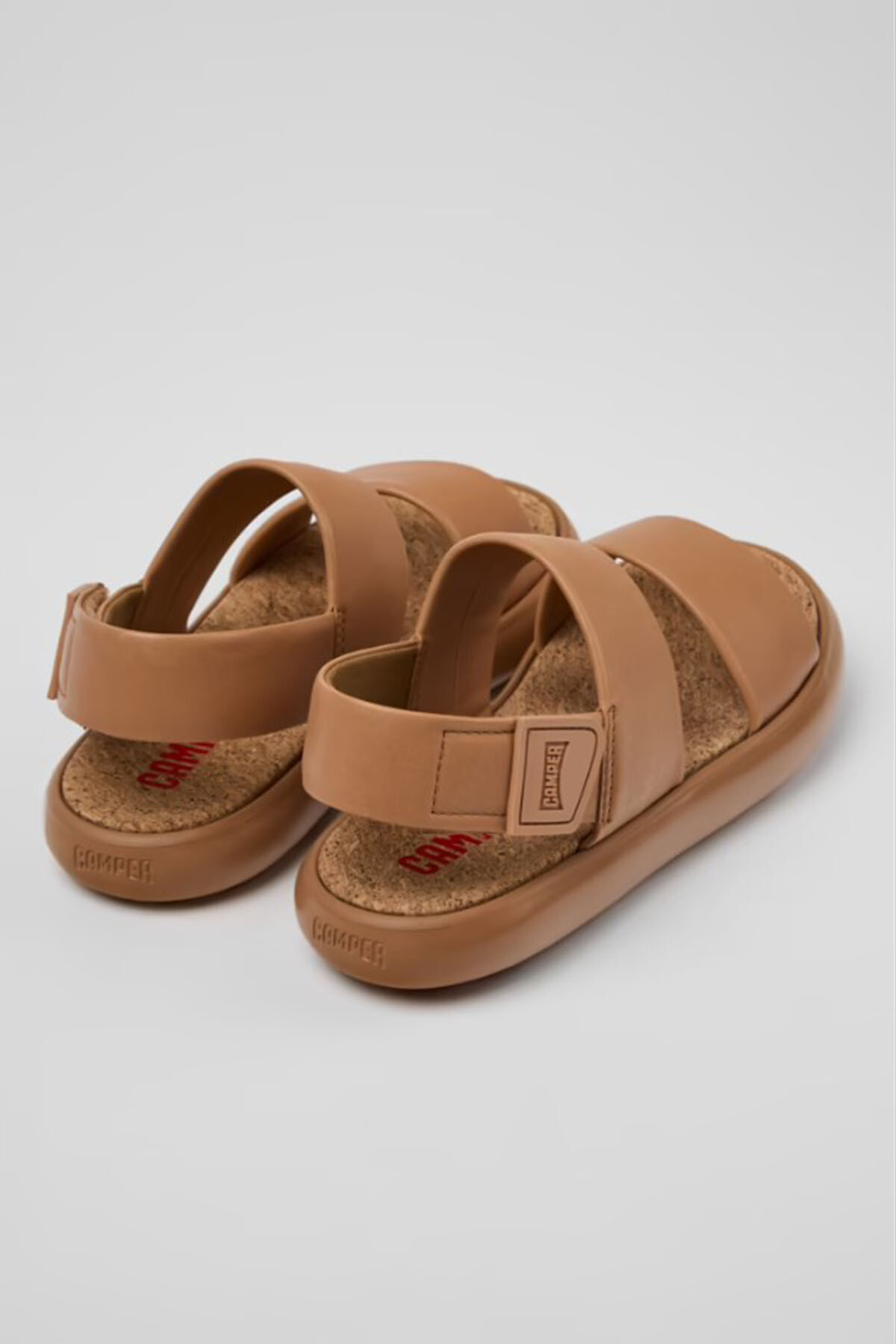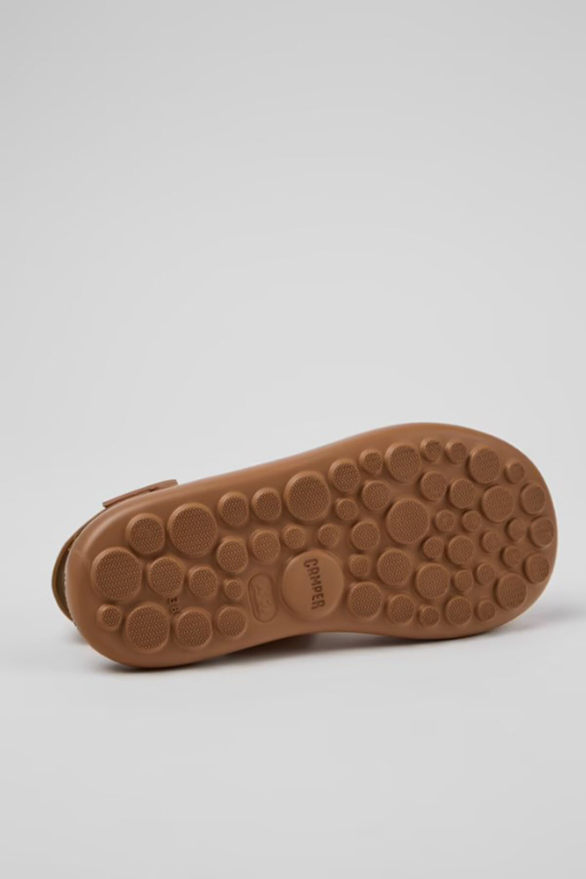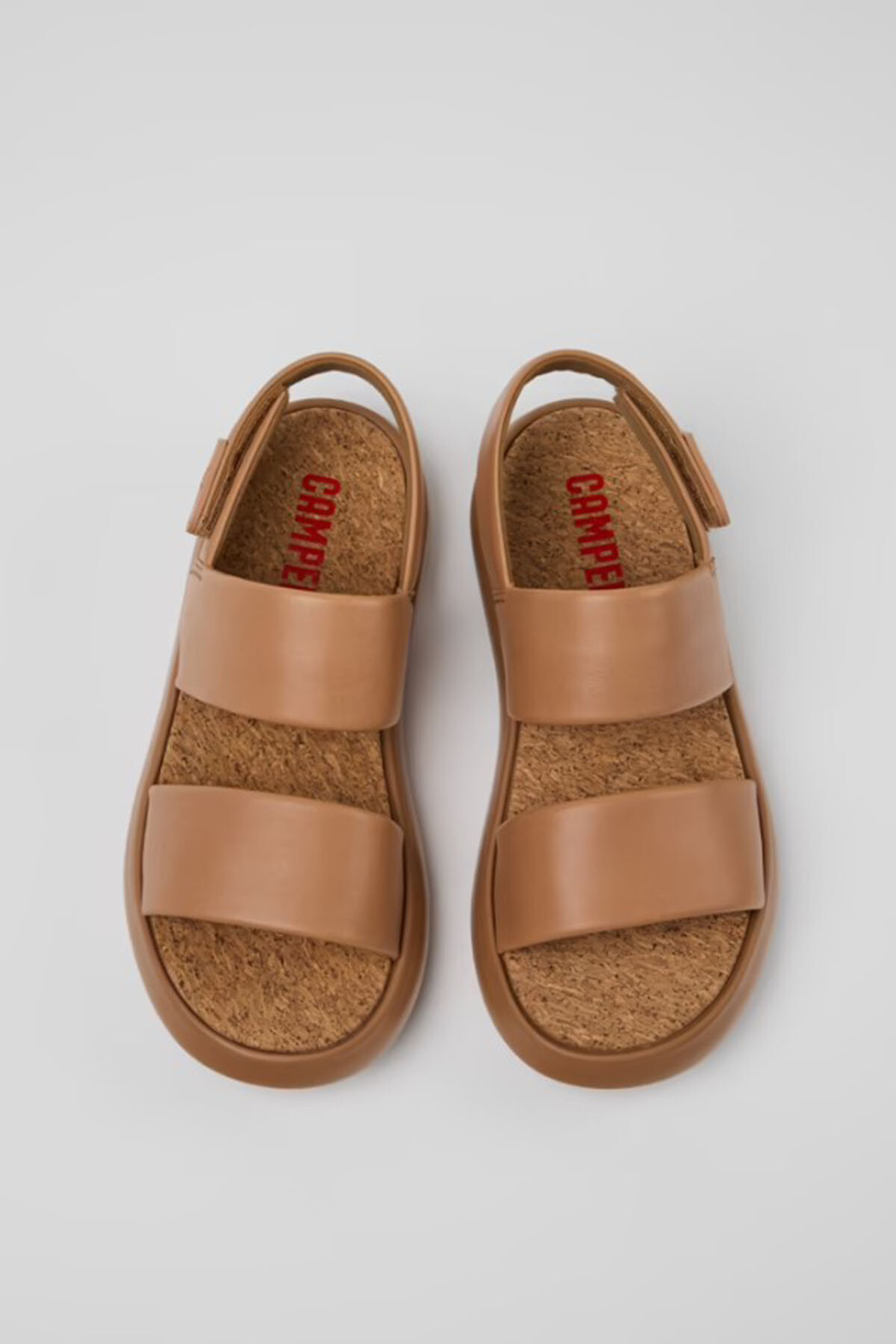 EVA taban, cırt cırtlı sistem ve XL EXTRALIGHT® OrganixTM 3.0 dış tabanlara (yüzde 30 biyodairesel bileşen) sahip ten rengi deri kadın sandaleti.