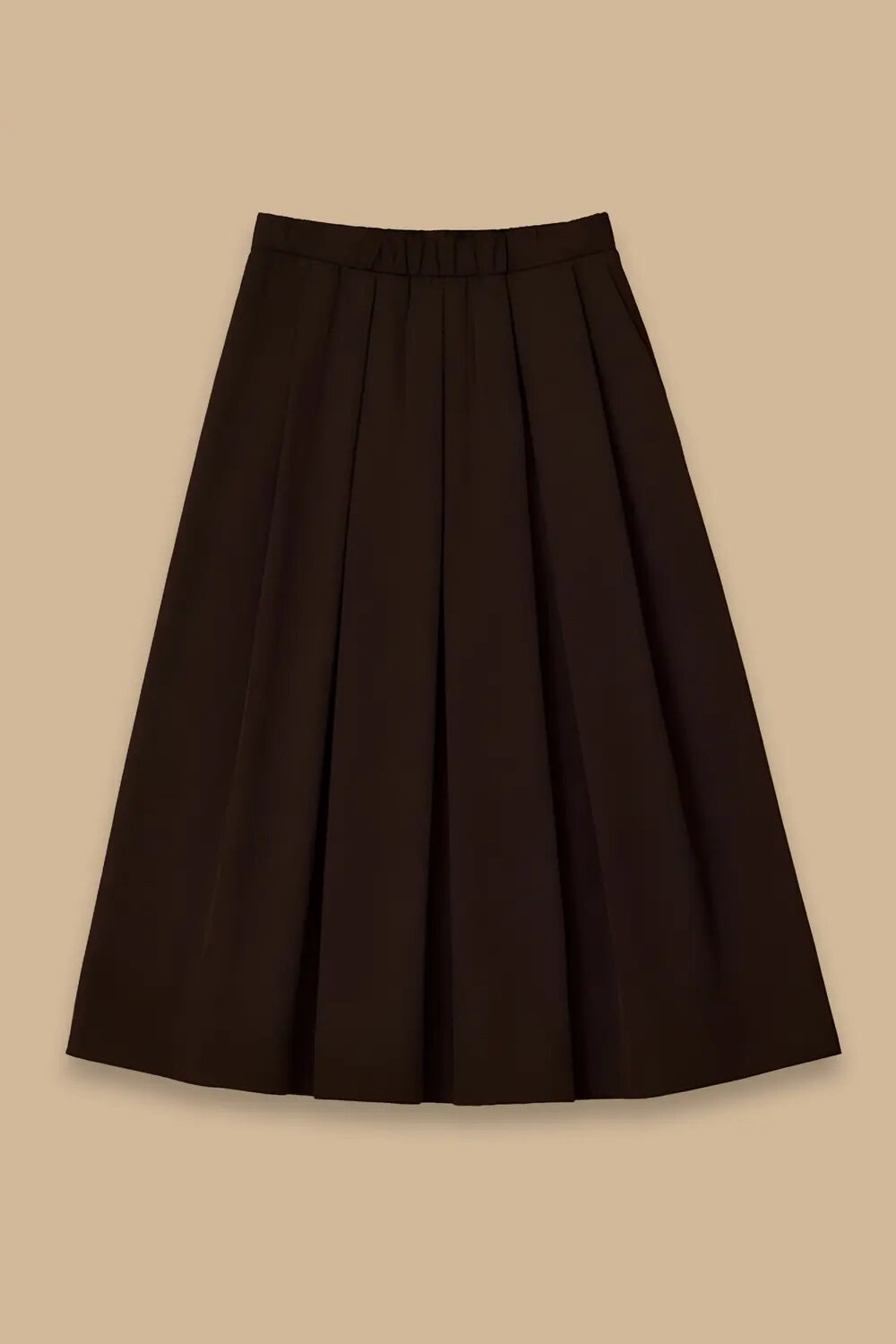 Tasarım: Beli lastikli (elastik) yapı, pile detaylı genişleyen yüzey, maksi boy