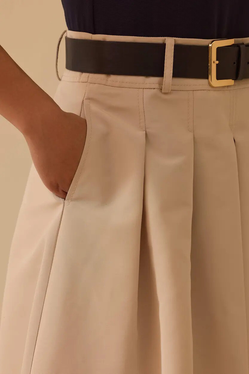 Detaylar: Pileli Etek, Kemer Aksesuarlı, Düğmeli Kapama, Çift Parça Görünümlü