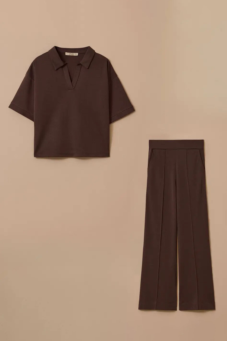 Kadın Polo Yaka Modal Takım - Kahverengi