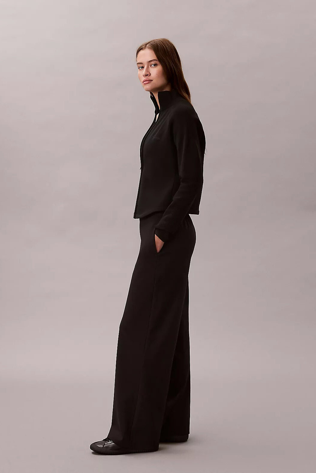 Geniş paça (wide leg) kesimiyle modern bir akıcılık kazanan tasarım, elastik bel bandı üzerinde yer alan tonal marka ibaresiyle sofistike bir imza sergiler. Fermuarsız ve astarsız yapısı sayesinde pratik bir kullanım sunan pantolon, tam kalıp (tam) özellikleri ve 100 cm boyuyla bacak boyunu daha uzun ve zarif gösterir. Yan kısımlarda yer alan gizli cepler ise fonksiyonelliği estetikle birleştirir.