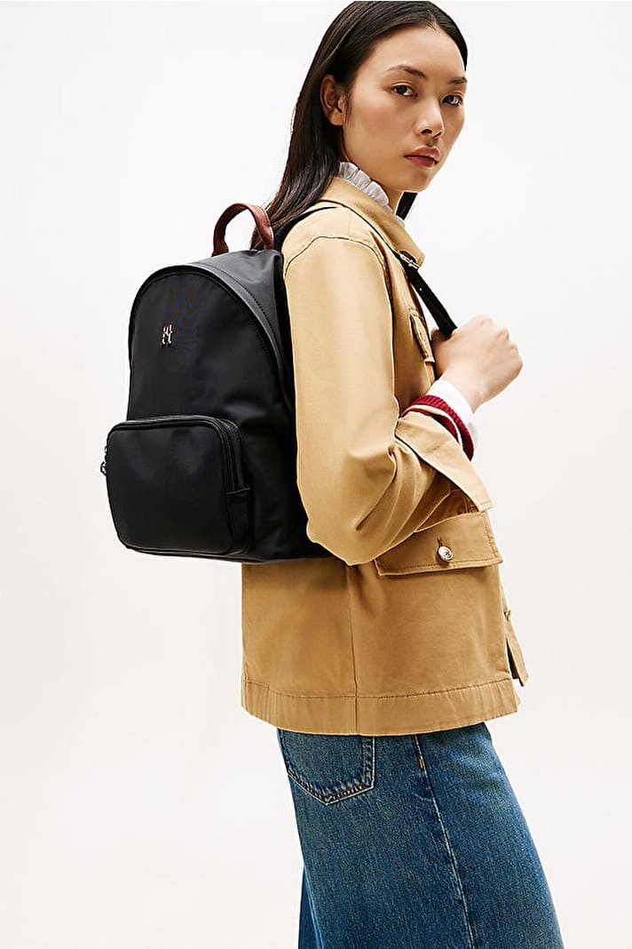 Tüm temel ihtiyaçlarınızı stil sahibi bir şekilde taşımak için tasarlanan bu sırt çantası, pratikliği ve şıklığı bir araya getiriyor. Dayanıklı polyester malzemeden üretilen çantanın kubbe (dome) tasarımı, modern bir silüet sunar. Yastıklı sırt kısmı gün boyu konfor sağlarken, ayarlanabilir omuz askıları kişisel uyum sunar. Fermuarlı ana bölmesi ve içindeki slip cebi eşyalarınızı organize etmenize yardımcı olurken, fermuarlı dış ön cep kolay erişim sağlar. Ön kısımda yer alan metal monogram plaka, bu minimalist tasarıma lüks bir imza atar.