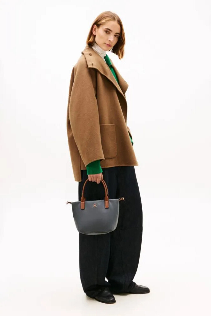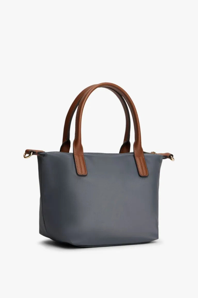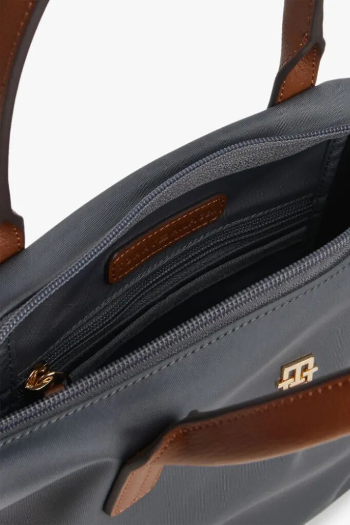 Günlük stilinize modern ve sportif bir dokunuş katan bu mini tote çanta, gri gövdesi ve ona eşlik eden taba rengi sap detaylarıyla sofistike bir kontrast sunuyor. Hafif yapısı ve ideal boyutları, gün boyu ihtiyaç duyduğunuz cüzdan, telefon ve makyaj malzemesi gibi temel eşyaları yanınızda taşımanızı kolaylaştırırken, fermuarlı ağız yapısı güvenli bir kullanım sağlar. Ön yüzdeki gold renkli metal logo detayı ile şıklığını tamamlayan bu tasarımı, ister kısa saplarıyla elinizde isterseniz de takıp çıkarılabilen uzun askısı ile omzunuzda rahatça kullanabilirsiniz.