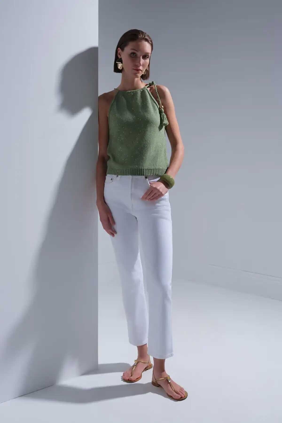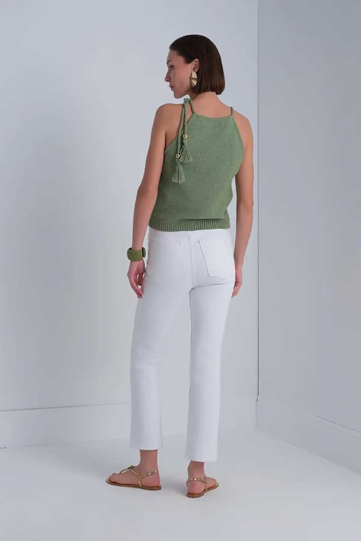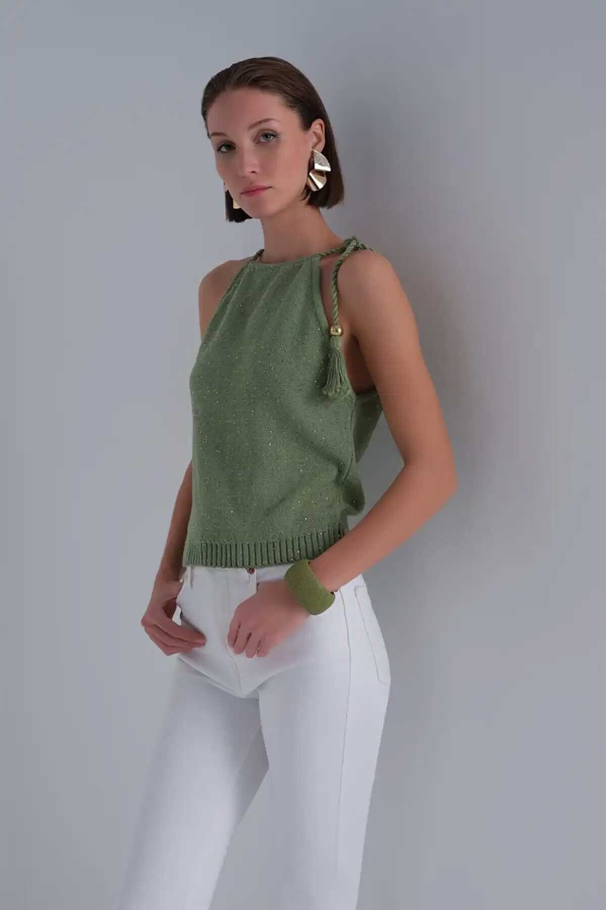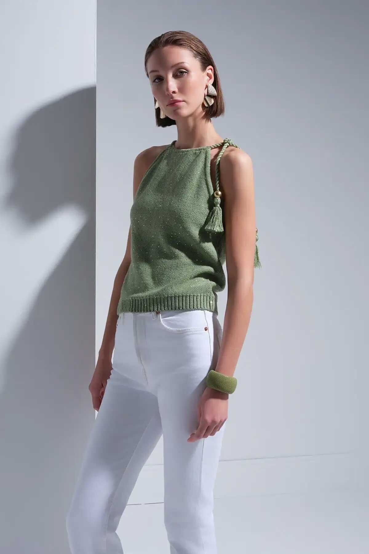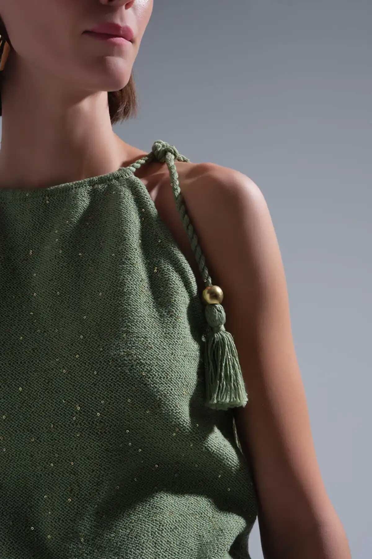 Kadın Püskül Detaylı Pullu Bluz - Yeşil