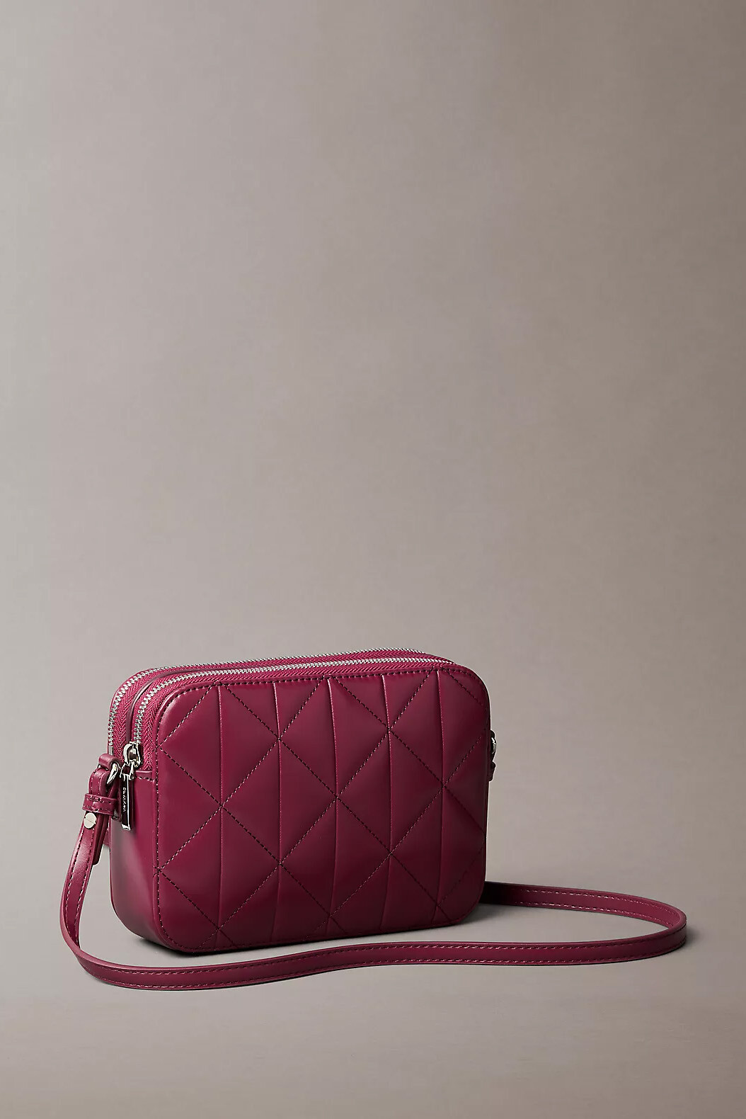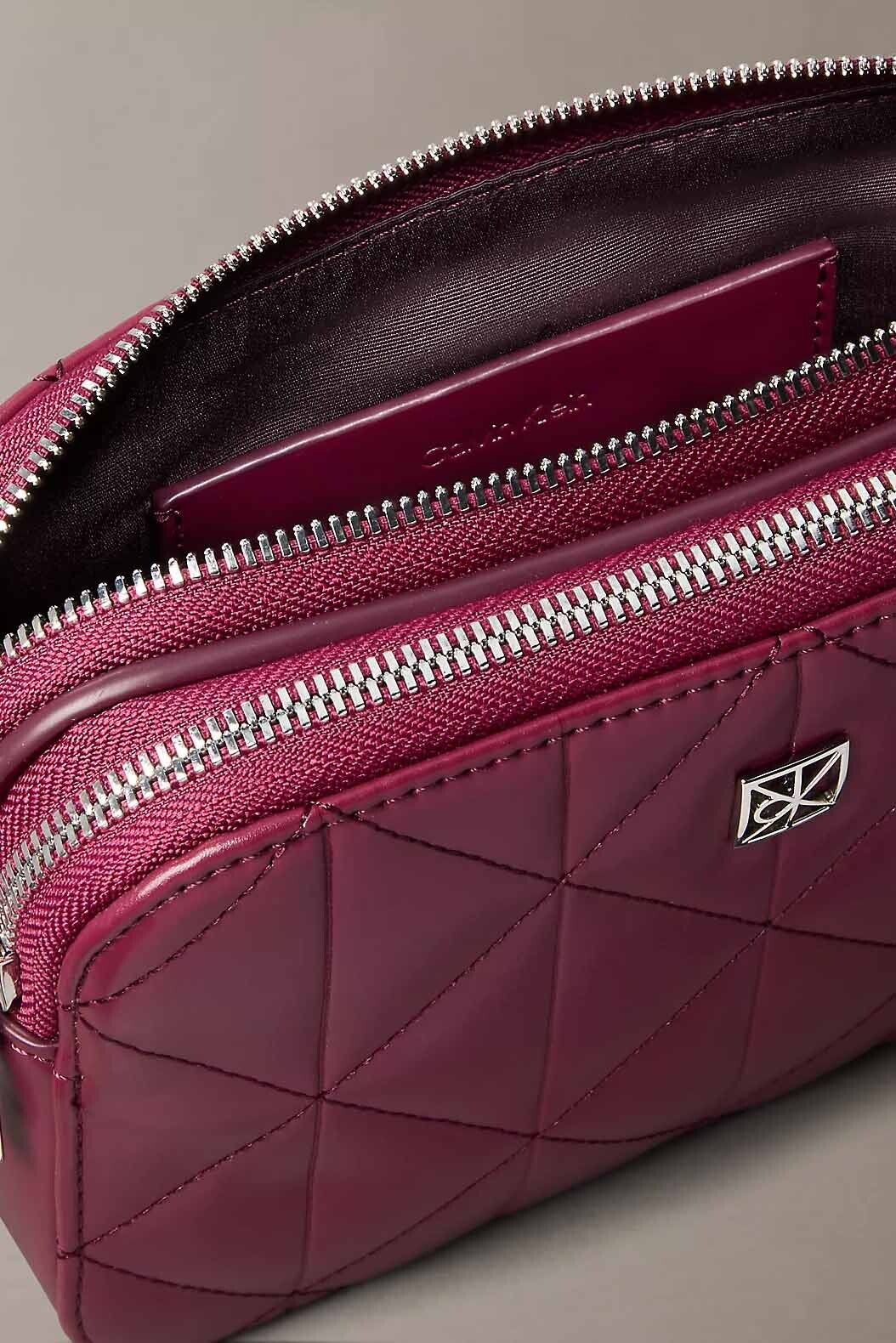 Zarif kapitone dokusunu modern bir formla birleştiren bu camera bag, günlük stilinize sofistike bir renk katıyor. %51 geri dönüştürülmüş polyester ve %49 poliüretan karışımından üretilen çevre dostu yapısı, sürdürülebilir moda anlayışını şık detaylarla buluşturur. Derin mürdüm tonu ve kompakt tasarımıyla hem şehir hayatında hem de özel kombinlerde dikkat çeken bir aksesuar seçeneğidir.
