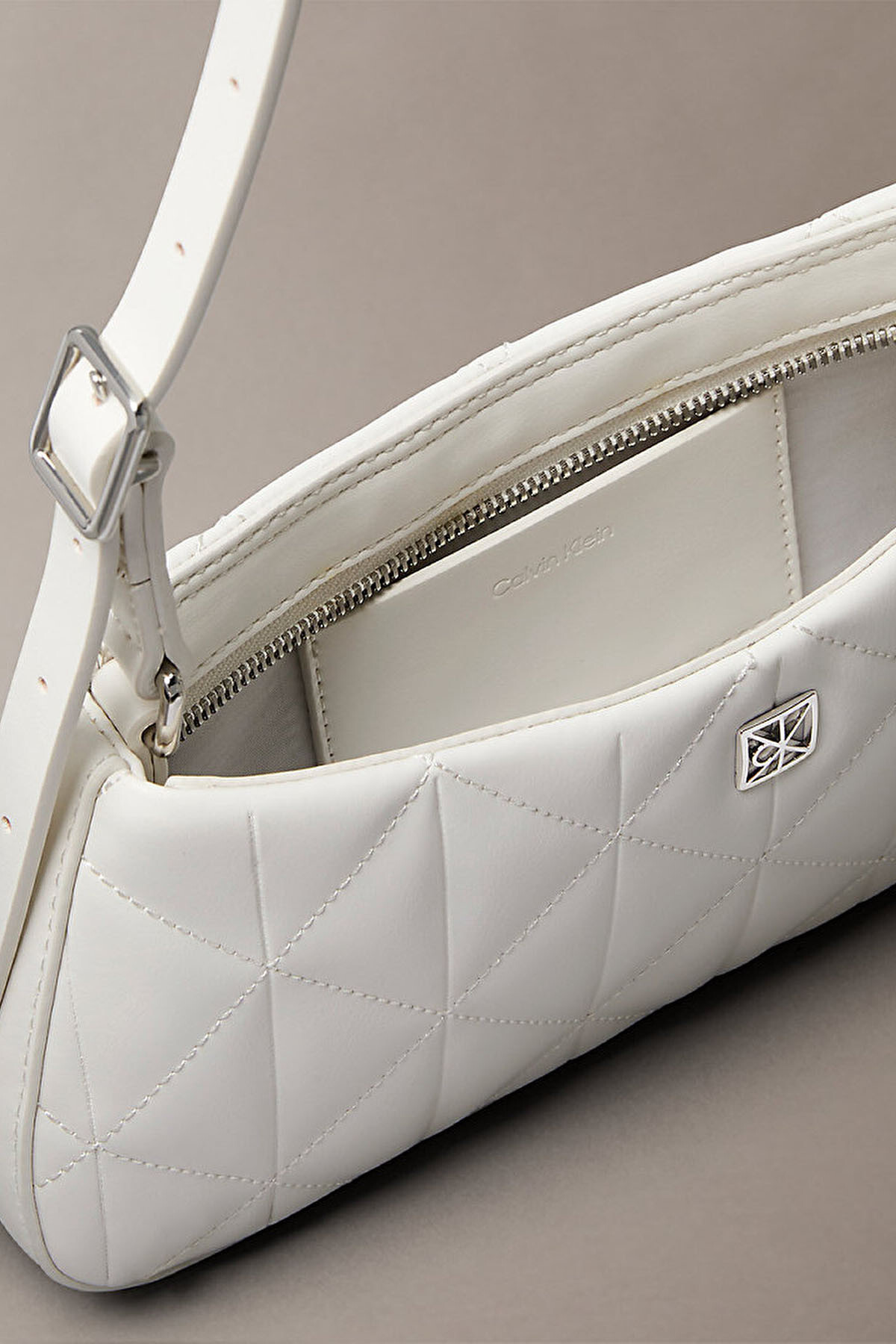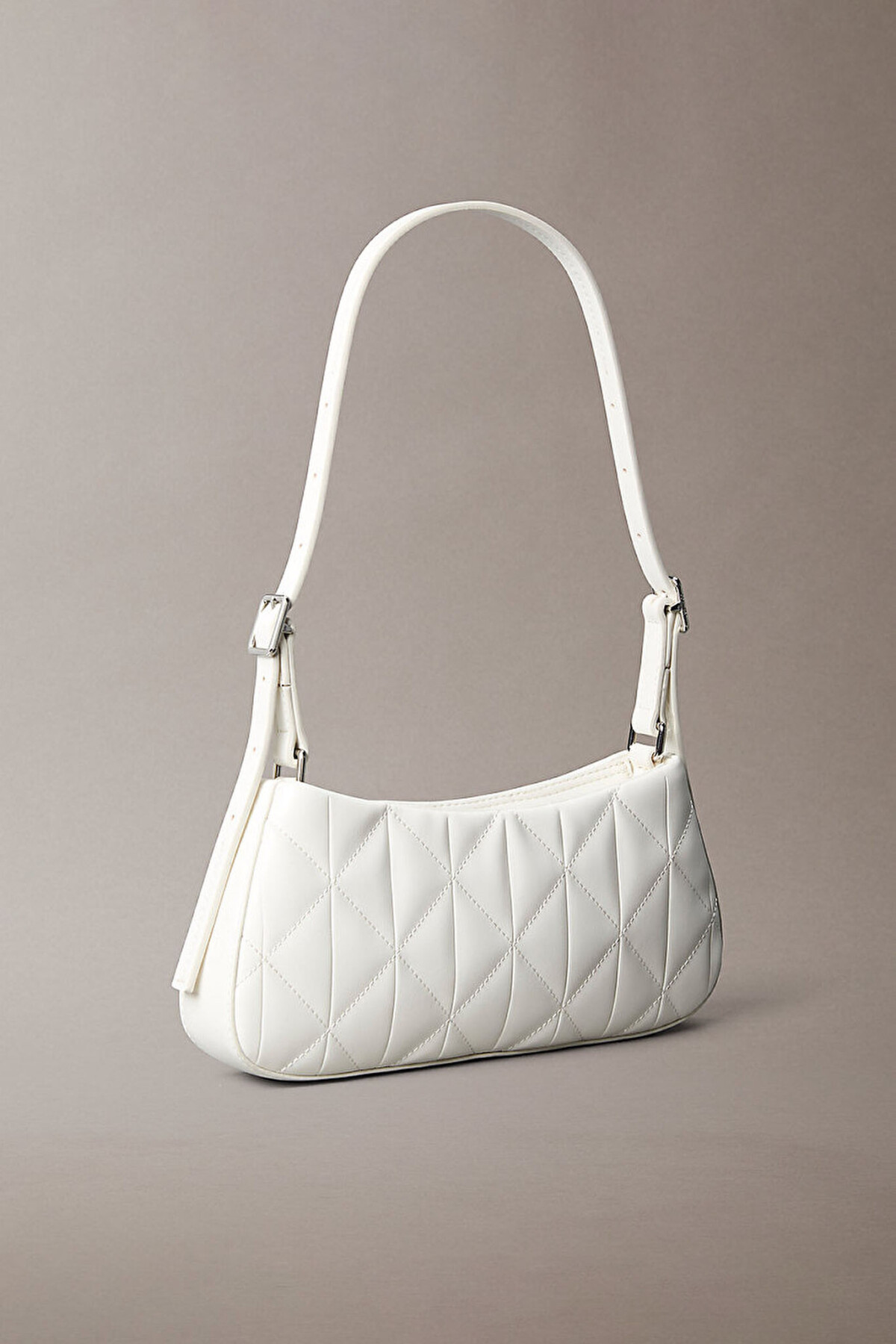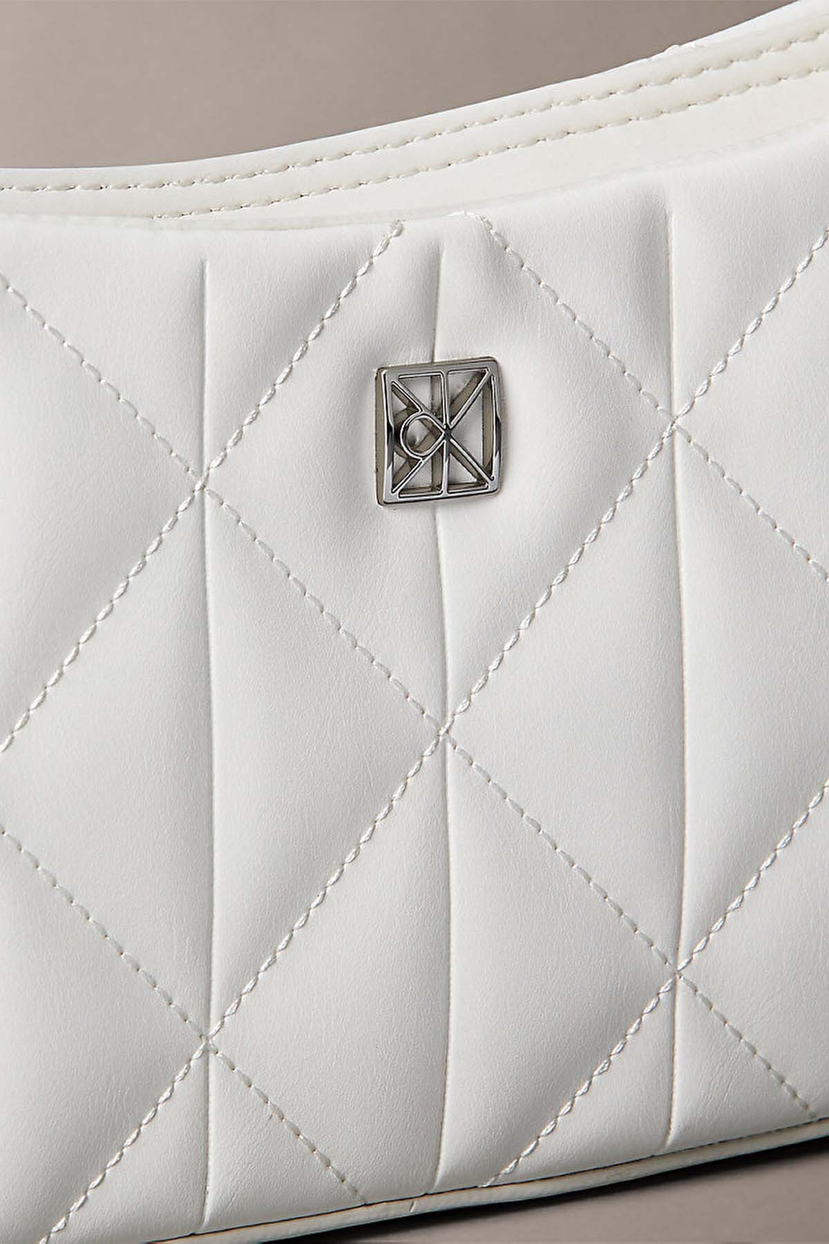 Modern şehir yaşamının temposuna estetik bir dokunuş katan bu omuz çantası, yapılandırılmış formu ve sofistike kapitone detaylarıyla öne çıkıyor. %51 polyester ve %49 poliüretan karışımından üretilen dayanıklı dış yüzeyi, baklava dilimli elmas dikiş dokusuyla zamansız bir şıklık sunuyor. Ön panelde yer alan gümüş renkli minimal amblem logo plakası tasarıma lüks bir imza kazandırırken, beyazın saf tonu her türlü kombinle kusursuz bir uyum yakalıyor.