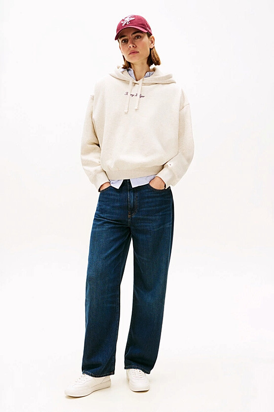 Konfor ve rafine bir stili bir araya getiren bu kapüşonlu sweatshirt, günlük gardırobunuzun vazgeçilmezi olacak. Pamuk karışımlı, esnek ve yumuşak polar kumaşı, gün boyu üstün bir rahatlık sunar. Düşük omuzlu rahat kesimi, modern ve dökümlü bir silüet yaratırken, göğüs kısmındaki üç boyutlu görünüme sahip zarif el yazısı logosu tasarıma sofistike bir dokunuş katar. Ribanalı manşetleri ve etek ucuyla tamamlanan bu parça, hem şık hem de konforlu bir stil arayanlar için idealdir.