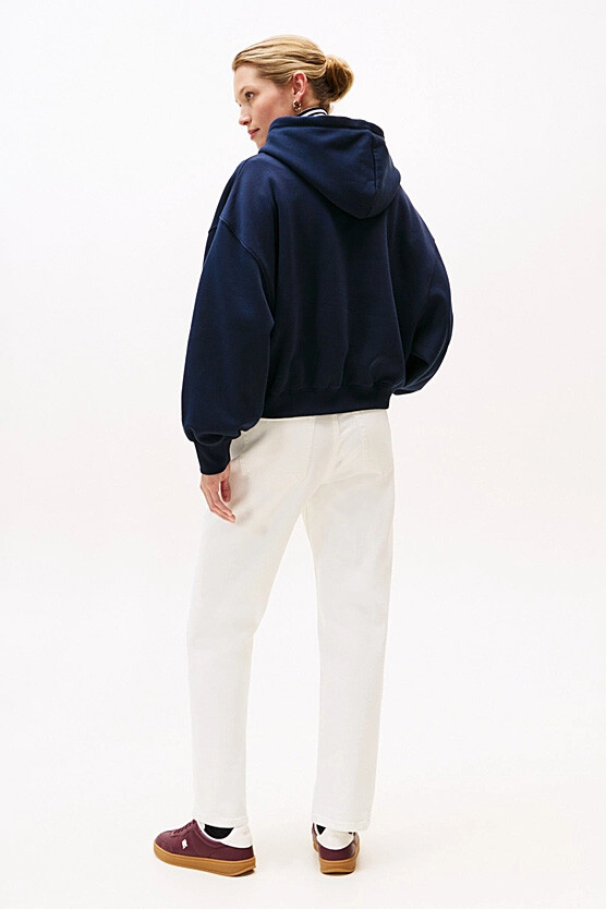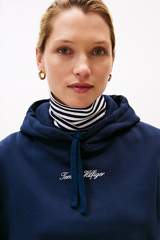 Konfor ve rafine bir stili bir araya getiren bu kapüşonlu sweatshirt, günlük gardırobunuzun vazgeçilmezi olacak. Pamuk karışımlı, esnek ve yumuşak polar kumaşı, gün boyu üstün bir rahatlık sunar. Düşük omuzlu rahat kesimi, modern ve dökümlü bir silüet yaratırken, göğüs kısmındaki üç boyutlu görünüme sahip zarif el yazısı logosu tasarıma sofistike bir dokunuş katar. Ribanalı manşetleri ve etek ucuyla tamamlanan bu parça, hem şık hem de konforlu bir stil arayanlar için idealdir.