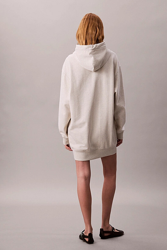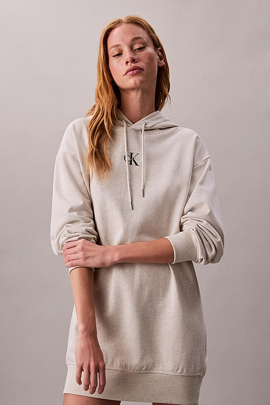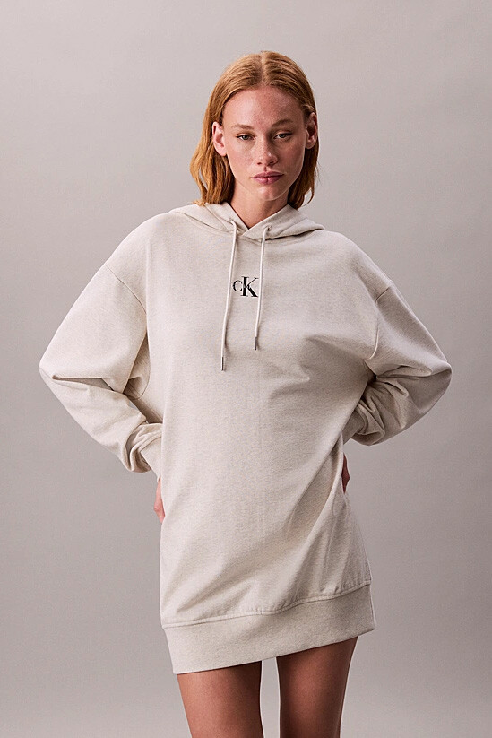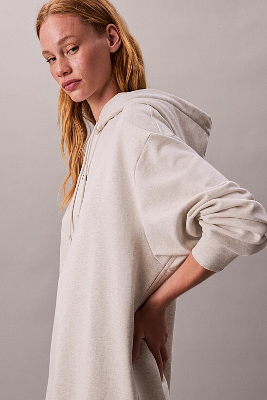 Yumuşak ve doğal tonuyla öne çıkan bu kapüşonlu sweatshirt elbise, konforu modern tasarımla birleştiriyor. Rahat kalıbı ve cilde nefes aldıran pamuk karışımlı Terry kumaşı ile gün boyu konfor sunar. Büzgü ipli kapüşonu, pratik yan cepleri ve formunu koruyan nervürlü detayları ile sportif şıklığı yakalayan elbise, göğsündeki zarif monogram nakışıyla kimliğini tamamlar. Zahmetsiz ve stil sahibi bir görünüm için botlar veya spor ayakkabılarla mükemmel uyum sağlar.