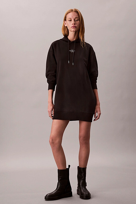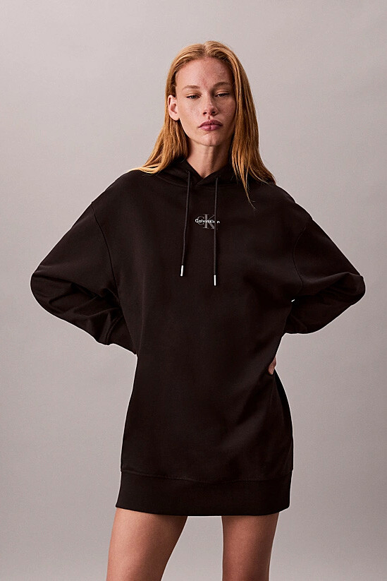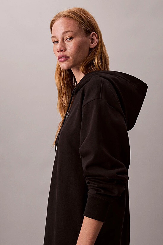 Konfor ve modern stili bir araya getiren bu kapüşonlu sweatshirt elbise, gardırobunuzun vazgeçilmezi olmaya aday. Yumuşak pamuk karışımlı Terry kumaşı gün boyu rahatlık sunarken, rahat kalıbı hareket özgürlüğü sağlar. Büzgü ipli kapüşonu, fonksiyonel yan cepleri ve nervürlü detayları ile sportif bir şıklık sunan tasarım, göğsündeki minimalist monogram nakışıyla zarif bir dokunuş kazanır. Hem spor ayakkabılarla hem de botlarla kolayca kombinleyerek zahmetsiz bir stil yaratabilirsiniz.