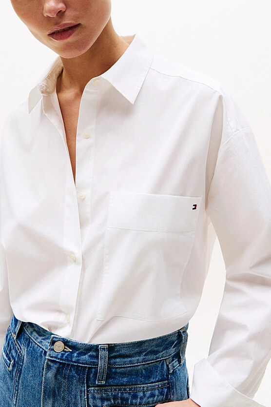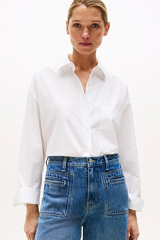 Gardıropların temel taşı olan beyaz gömlek, konforlu ve modern bir yorumla karşınızda. Nefes alan %100 pamuklu poplin kumaşı, gün boyu ferahlık sunar. Rahat kesimi, hareket özgürlüğü sağlarken zahmetsiz bir şıklık yaratır. Klasik gömlek yaka, tek göğüs cebi ve düğmeli ön kapama gibi zamansız detaylar, gömleğin minimalist ve çok yönlü karakterini pekiştirir. Cep üzerinde yer alan zarif nakış logo, tasarıma incelikli bir imza atar.