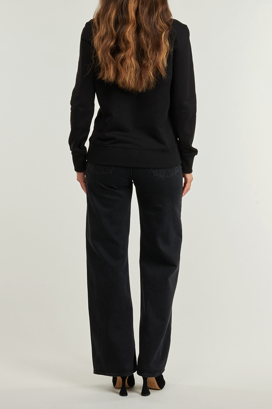 Günlük stilinize lüks bir dokunuş katacak bu sweatshirt ile konforu ve iddialı tasarımı bir arada yaşayın. %100 pamuklu polar kumaşı sayesinde yumuşak bir his sunarken, gün boyu rahatlık sağlar. Klasik bisiklet yaka kesimi ve regular fit kalıbıyla zamansız bir silüet sunan sweatshirt'ün en dikkat çekici detayı, göğüs kısmını süsleyen büyük, altın rengi parlak nakışlı yazı logosudur. Fitilli yaka, manşetler ve etek ucuyla tamamlanan bu parça, jean pantolonlardan eşofman altlarına kadar her kombine zahmetsizce uyum sağlayarak stil sahibi bir duruş sergiler.