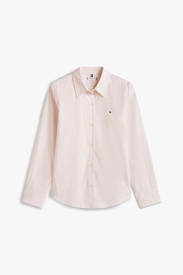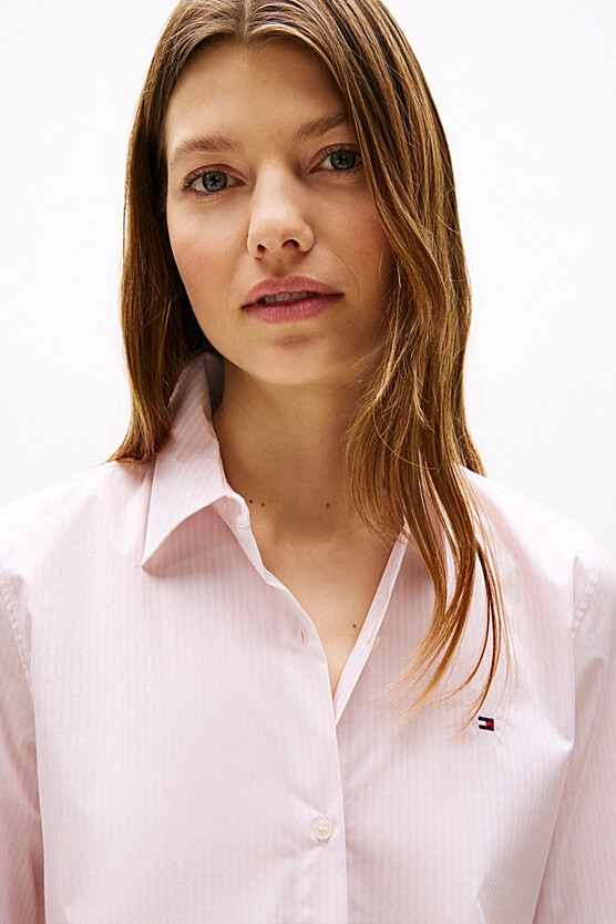 Kadın Regular Fit Çizgili Poplin Gömlek - Pembe/Beyaz