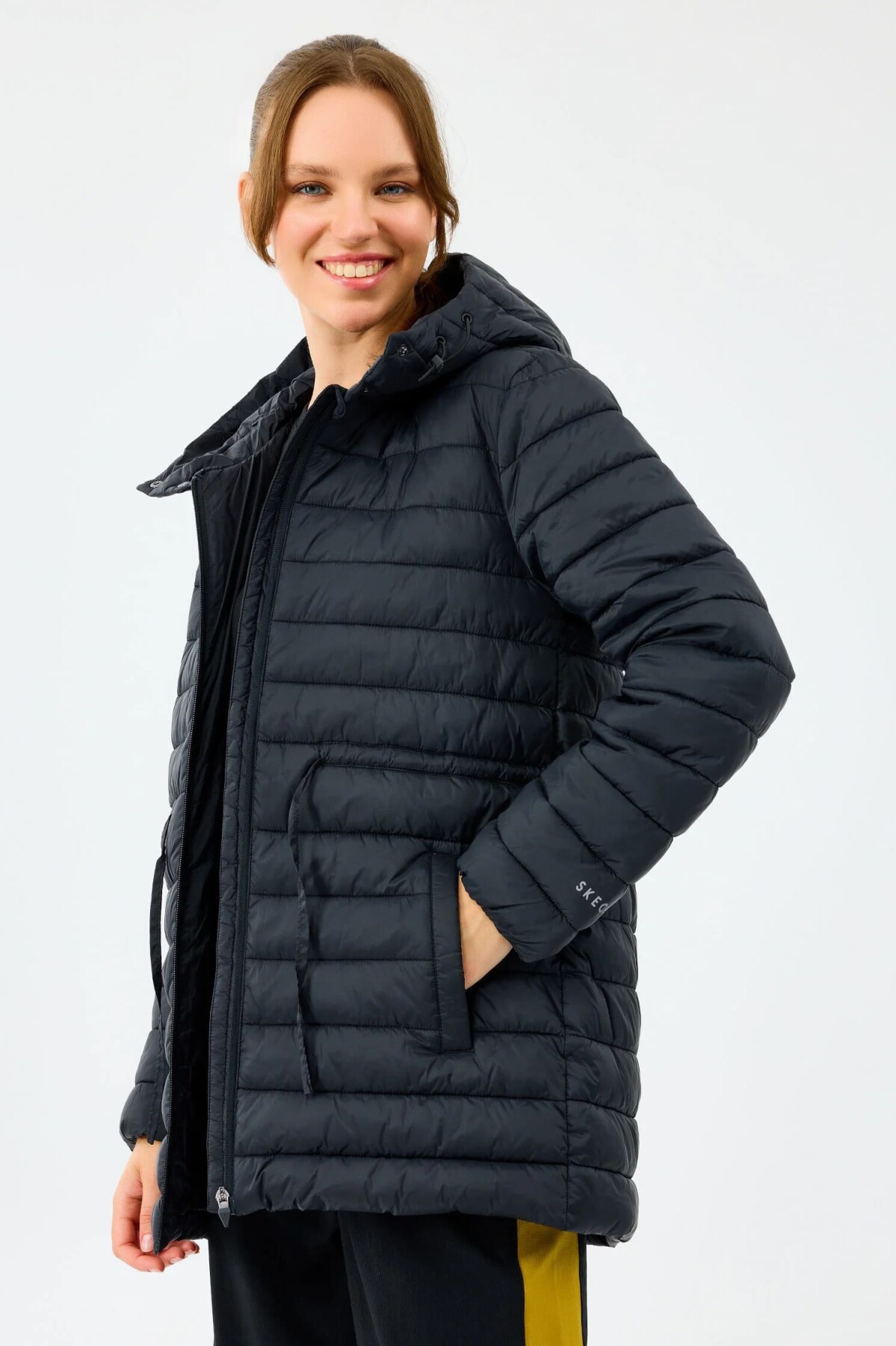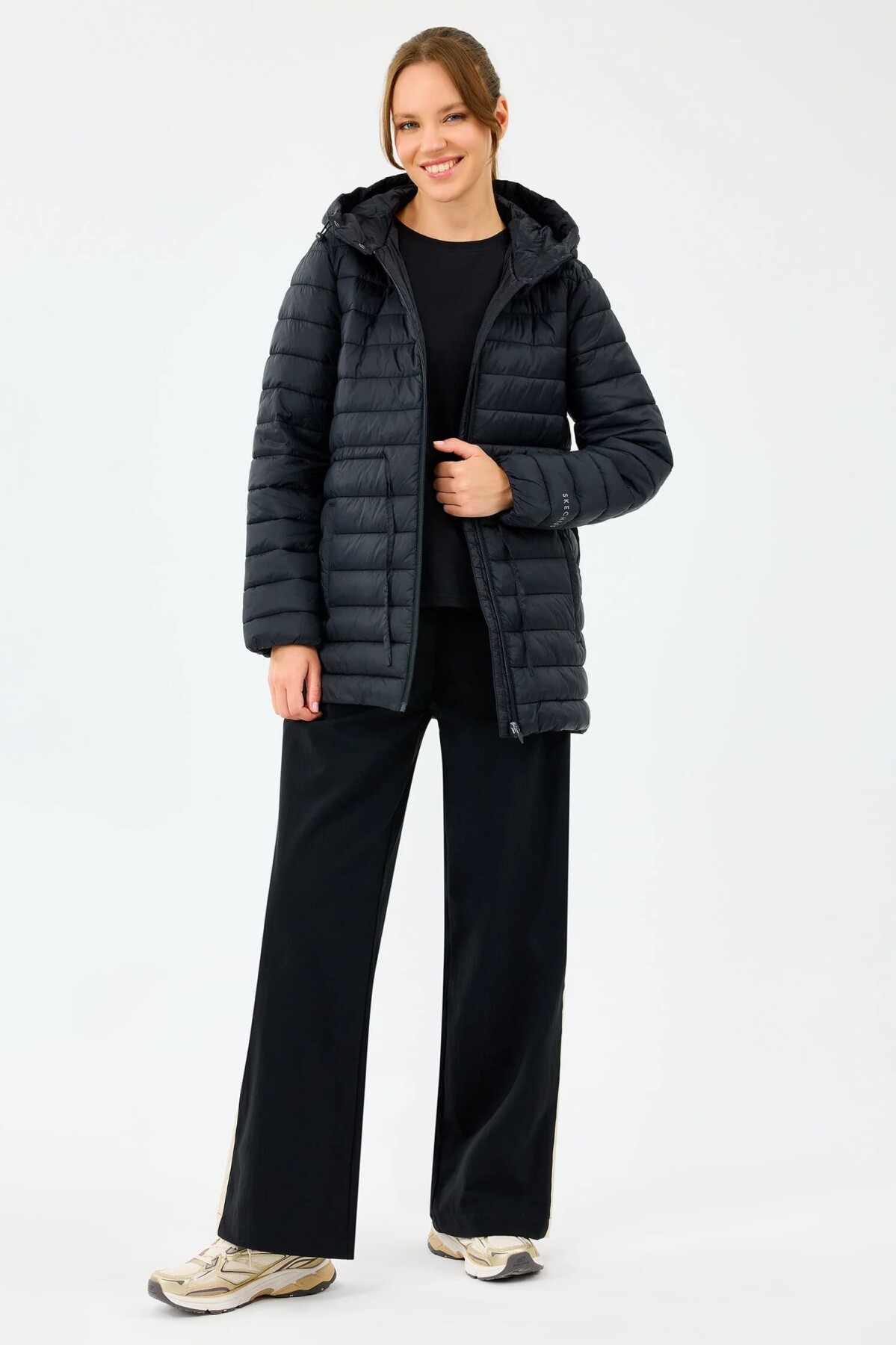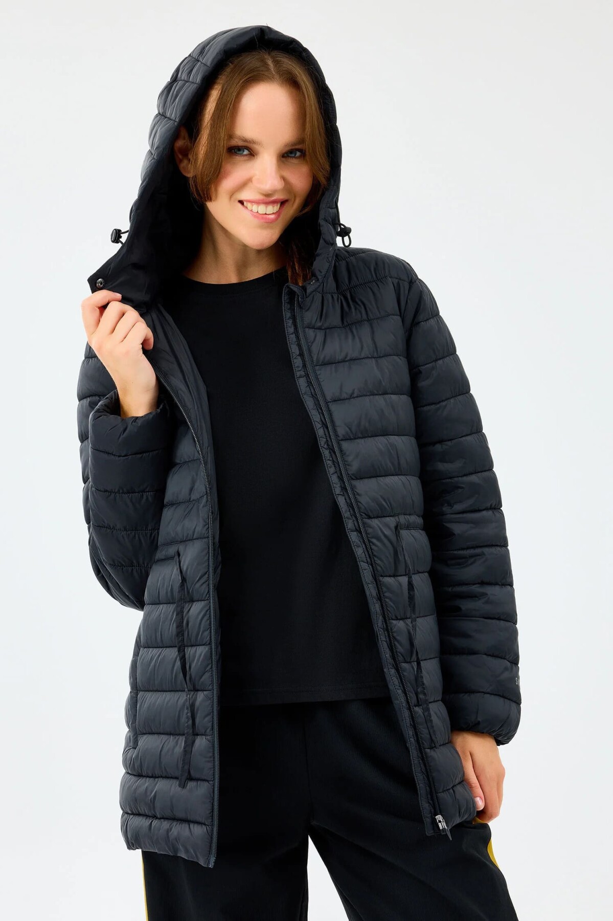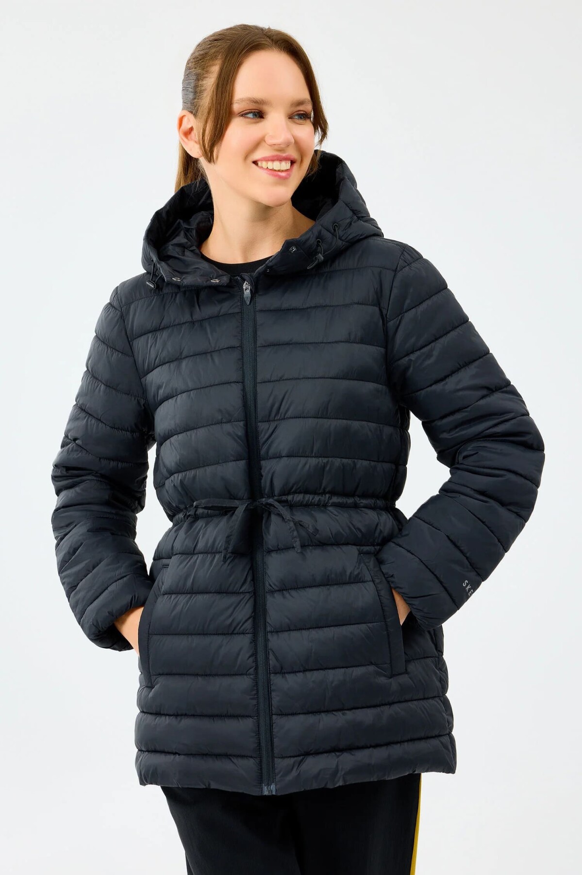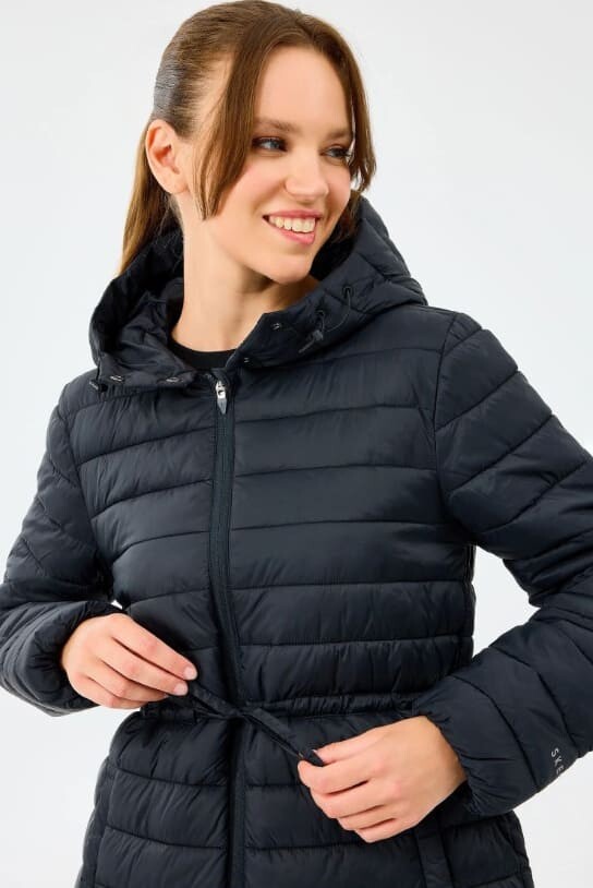 Hafif yapısı ve koruyucu özellikleriyle bu kapitone mont, soğuk günlerde modern bir konfor sunar. Vücut ısısını hapseden dolgusuyla sıcak tutarken, hafifliğiyle gün boyu rahat hareket etmenize imkân verir. Kapüşonlu tasarımı rüzgâra karşı ekstra koruma sağlarken, belindeki ayarlanabilir bağcığı ile vücut hatlarınıza göre şekillendirebileceğiniz feminen bir silüet sunar.