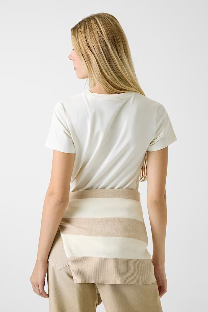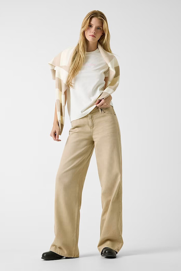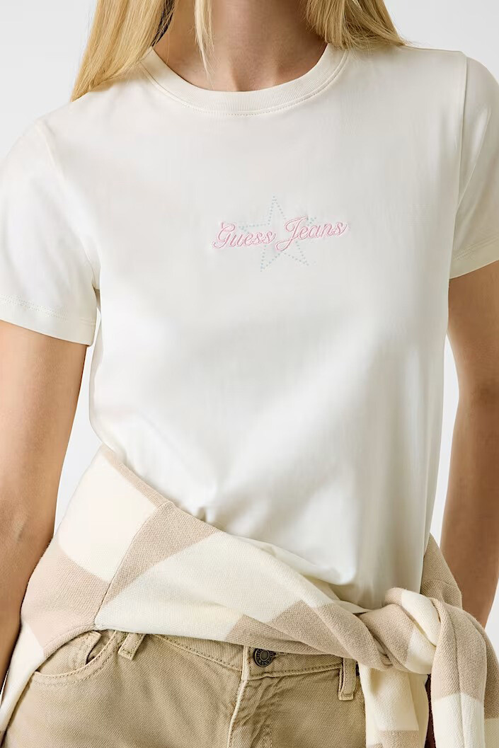 Krem renginin yumuşak ve aydınlık tonunu, feminen detaylarla buluşturan bu t-shirt, günlük stilinize ışıltılı bir dokunuş katıyor. %95 pamuk ve %5 elastan karışımından oluşan nefes alabilir ve esnek dokusu, cildinize gün boyu süren bir konfor sunuyor. Tasarımın odak noktası olan göğüs kısmındaki pembe renkli taşlarla işlenmiş yazı ve arka planındaki zarif yıldız silüeti, sade görünüme romantik ve şık bir hareket kazandırıyor. Bisiklet yaka kesimi ve vücudu nazikçe saran regular fit kalıbıyla, her mevsim dolabınızın vazgeçilmezi olmaya aday.