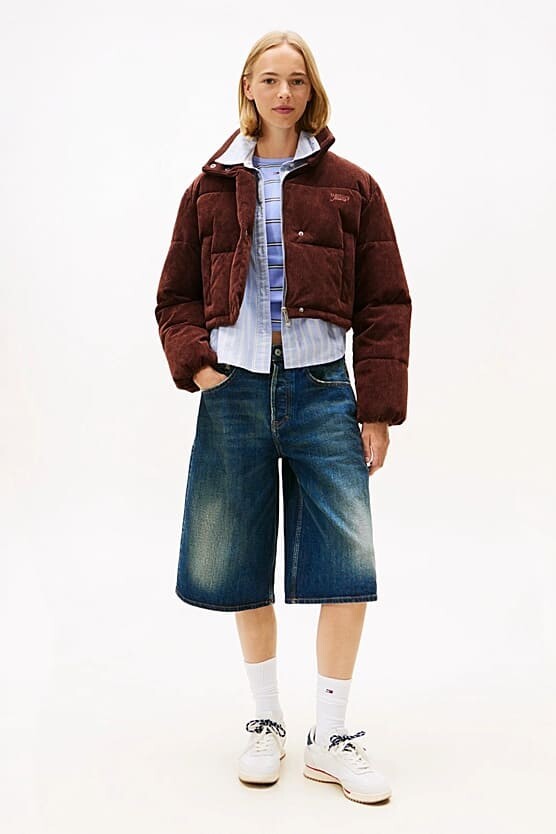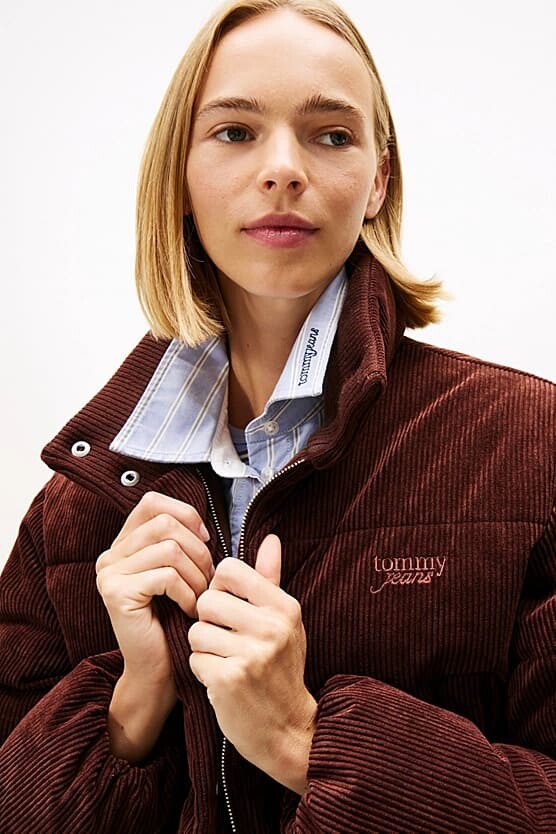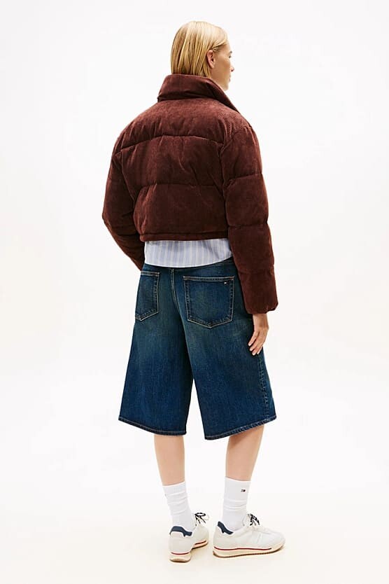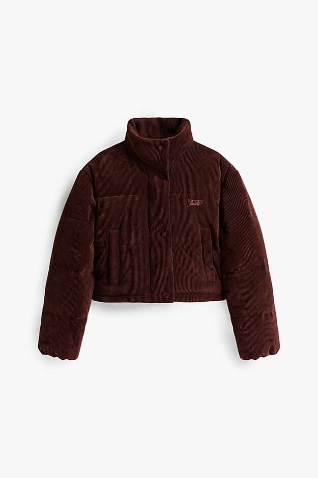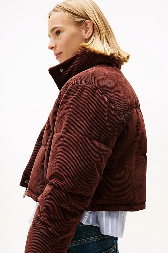 Kış kombinlerinize sıcak ve retro bir dokunuş katan bu kahverengi şişme mont, yumuşak fitilli kadife dokusuyla fark yaratır. Dolgulu yapısı sizi soğuktan uzak tutar. Boynu saran dik yakası rüzgarı engellerken, kısa (crop) kesimi yüksek belli jean ve eteklerle modern bir silüet oluşturur. Göğüs kısmındaki zarif yazı nakışı ile tamamlanan tasarım, hem şık hem de konforlu bir kış deneyimi sunar.