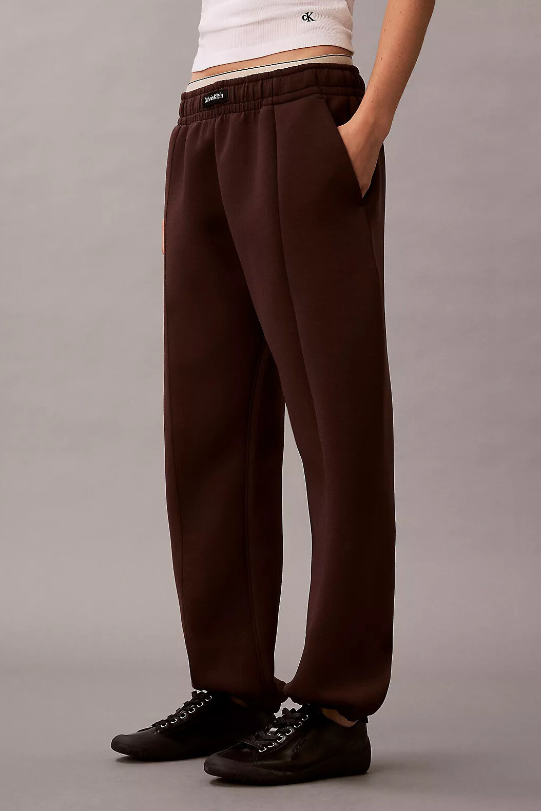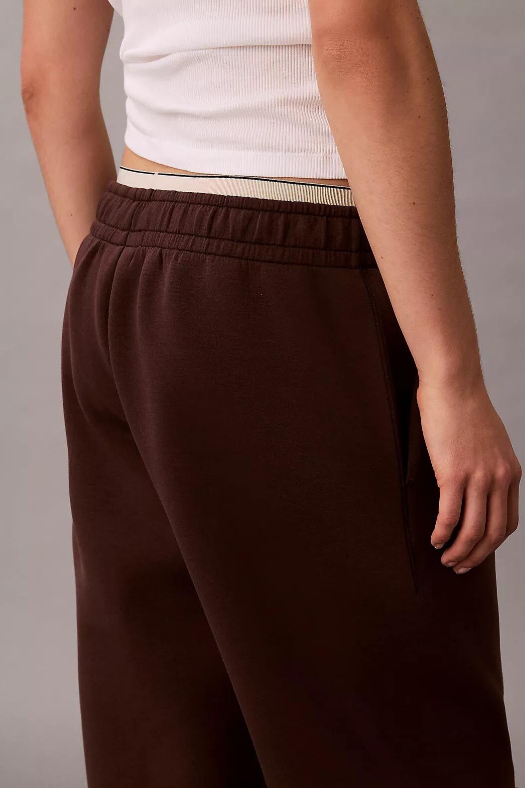 Detay: Arka bel bandında kontrast marka etiketi, yan cepler