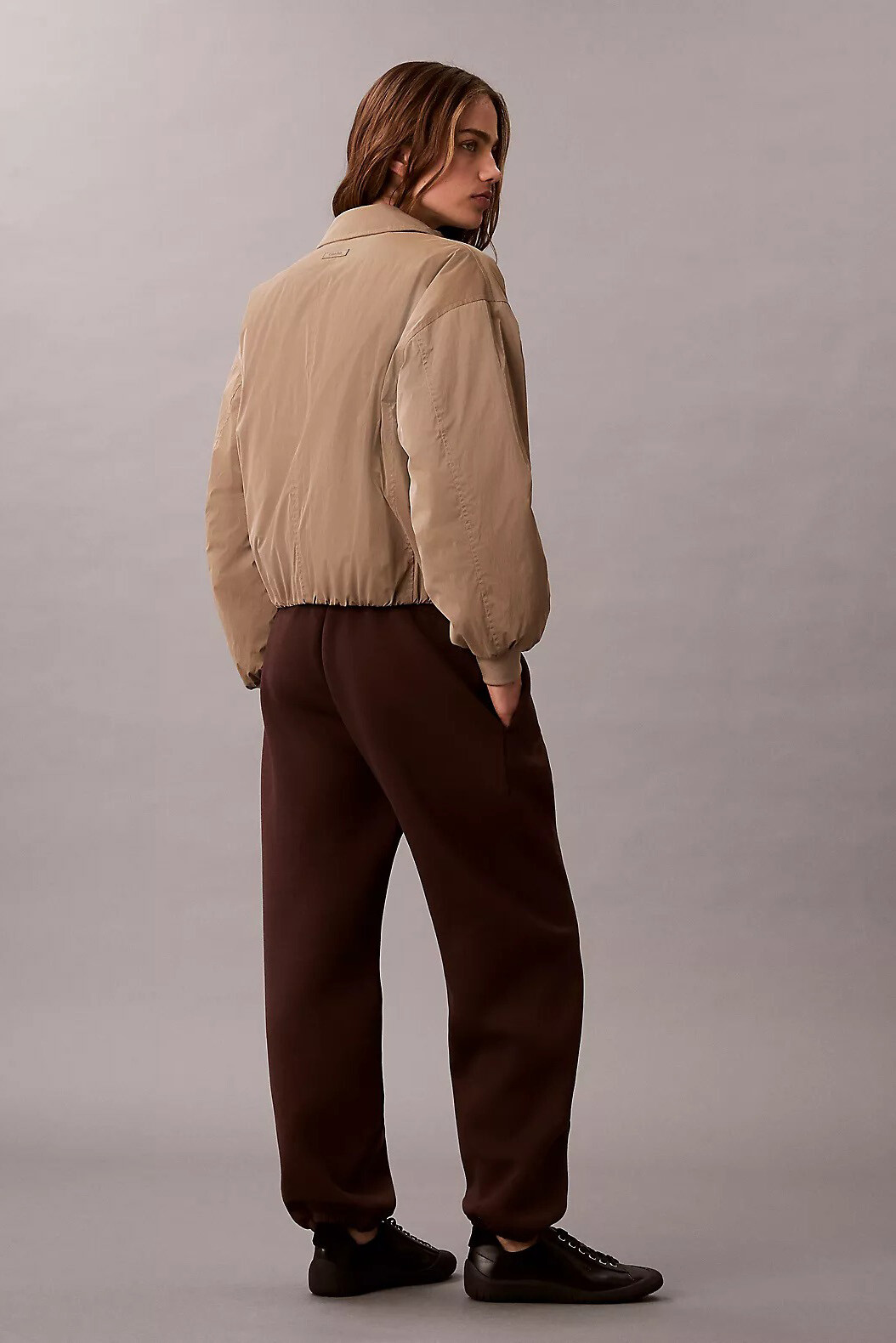 Konforlu scuba dokusunu modern ve relaxed bir kesimle buluşturan bu eşofman altı, günlük stilinize rafine bir dokunuş katıyor. %78 polyester, %13 viskoz ve %9 elastan karışımından oluşan kumaşı, pürüzsüz yüzeyi ve tok duruşuyla gün boyu hem şık hem de rahat bir kullanım sunar. Zengin kahverengi (Terra) tonu, mevsimsiz bir şıklık sunarak gardırobunuzun joker parçalarından biri olmaya adaydır.