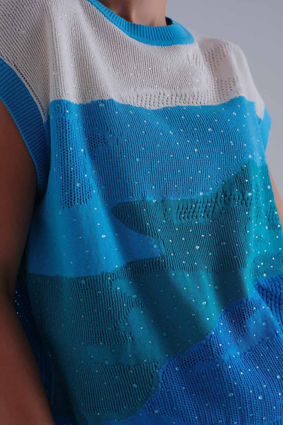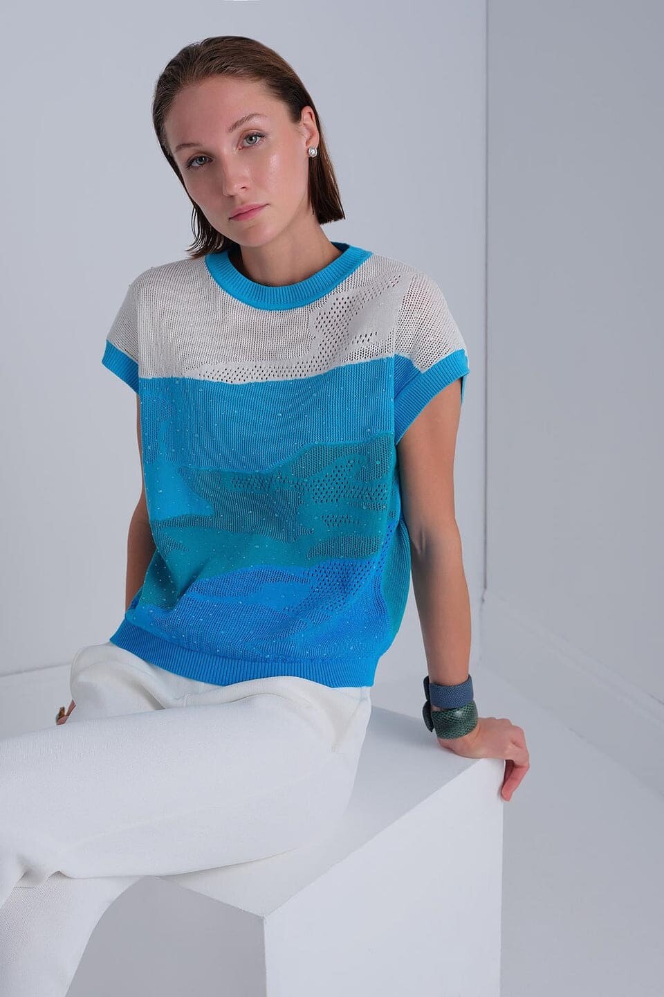 Kadın Renk Geçişli Bisiklet Yaka Süveter - Mavi