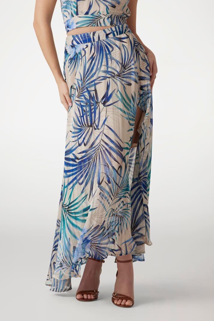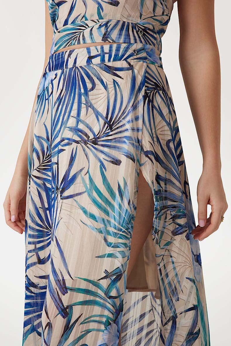 Kadın Romana Çiçek Desenli Anvelop Etek - Mavi