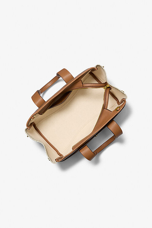 Çağdaş cazibeyi işlevsellikle buluşturan bu çanta, günlük stilinize sofistike bir dokunuş katacak. İkonik monogram desenli yüzeyi ve kontrast deri detaylarıyla öne çıkan bu parça, ön kısmındaki cilalı metal harf aksesuarıyla zenginleştirilmiştir. Omuzunuza rahatça oturacak şekilde tasarlanmış sağlam taşıma saplarının yanı sıra, ayarlanabilir çapraz askısı sayesinde stil sahibi bir şekilde eller serbest kullanım imkanı sunar. Fermuarlı ana bölmesi ve kullanışlı iç/dış cepleriyle temel eşyalarınızı düzenli tutmanızı sağlar.