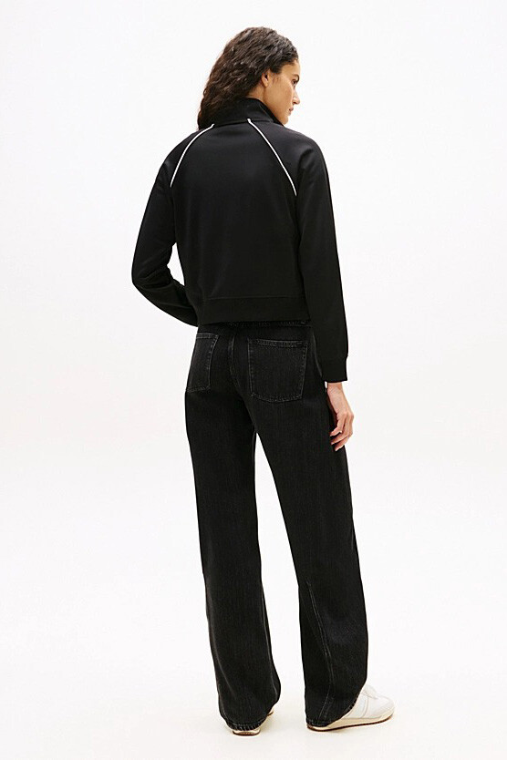 %89 polyester ve %11 elastan karışımlı interlock örme kumaşıyla tasarlanan bu ceket, pürüzsüz dokusuyla konforu, sportif detaylarıyla şıklığı birleştirerek günlük stilinize dinamik bir hava katar. Dik yaka tasarımı ve tam boy fermuarı, serin havalarda boynunuzu korurken pratik bir kullanım sunar. Omuzlardan kollara uzanan kontrast renkli ince şeritler, tasarıma retro bir hareketlilik kazandırırken; göğüs üzerindeki minimal arma detayı şık bir odak noktası oluşturur. Bel hizasında biten modern kesimi, özellikle yüksek belli jeanler ve eşofman altlarıyla birleştiğinde bacak boyunu daha uzun gösteren dengeli bir silüet yaratır.