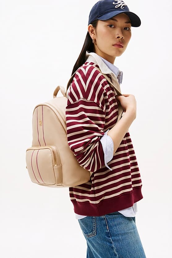 Günlük stilinize şık ve fonksiyonel bir dokunuş katacak bu sırt çantası, zarif tasarımıyla öne çıkıyor. Pürüzsüz poliüretan malzemeden üretilen çanta, ön yüzündeki dikey renkli şeritler ve parlak metal monogram amblemi ile sofistike bir görünüm kazanır. Fermuarlı ana bölmesi eşyalarınız için geniş bir alan sunarken, ön kısımdaki fermuarlı cep küçük eşyalarınıza kolay erişim sağlar. Ayarlanabilir omuz askıları ve konfor sunan kapitone sırt paneli ile gün boyu rahat bir kullanım sunar.