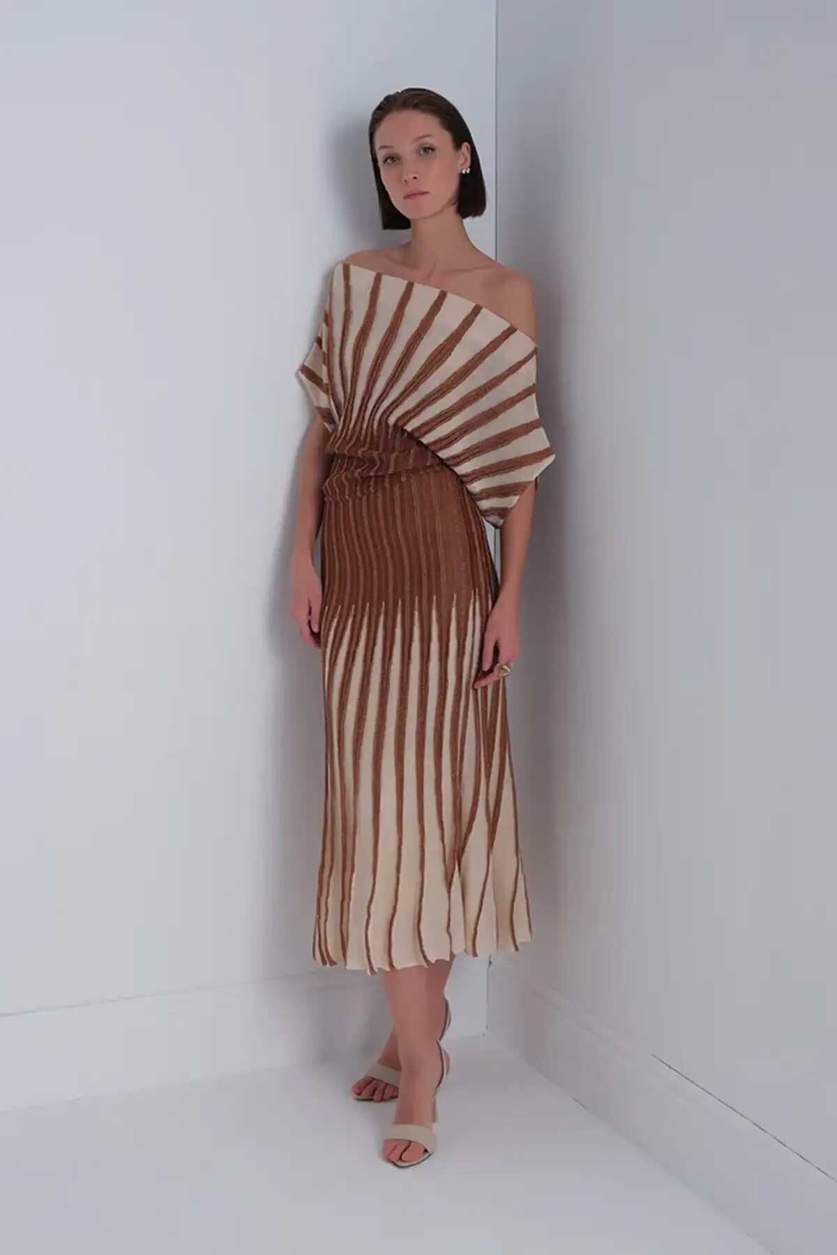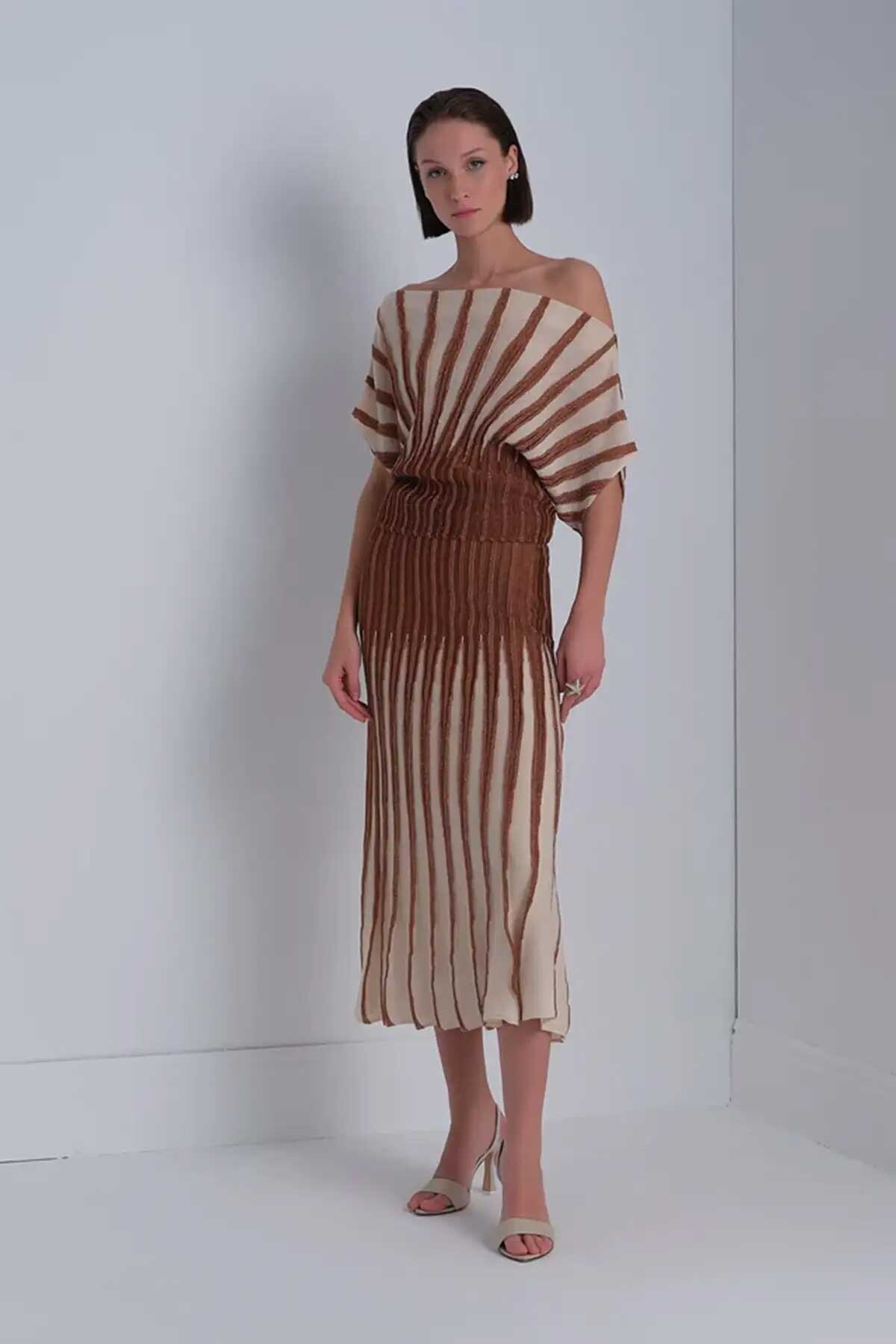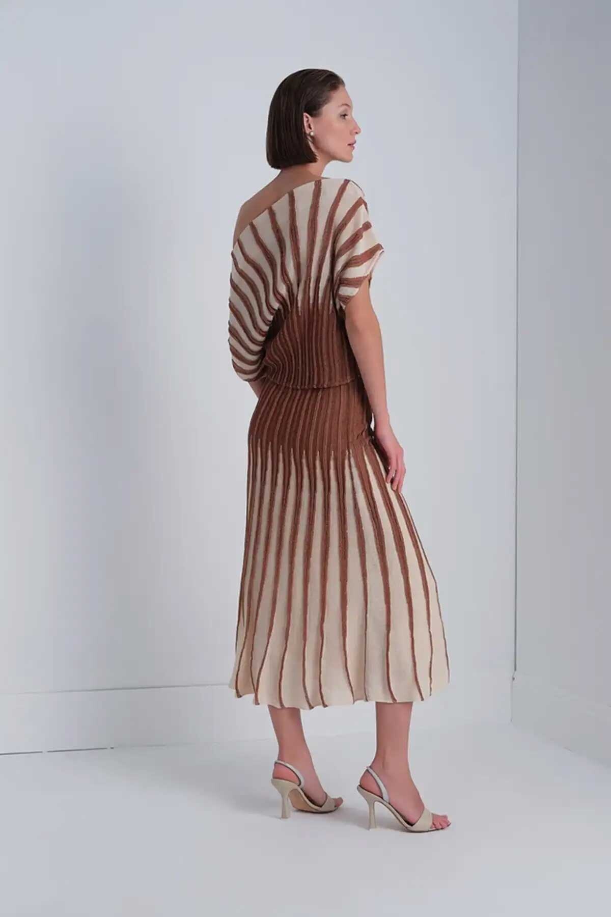 Kadın Sim Detaylı Piliseli Midi Etek - Kahverengi