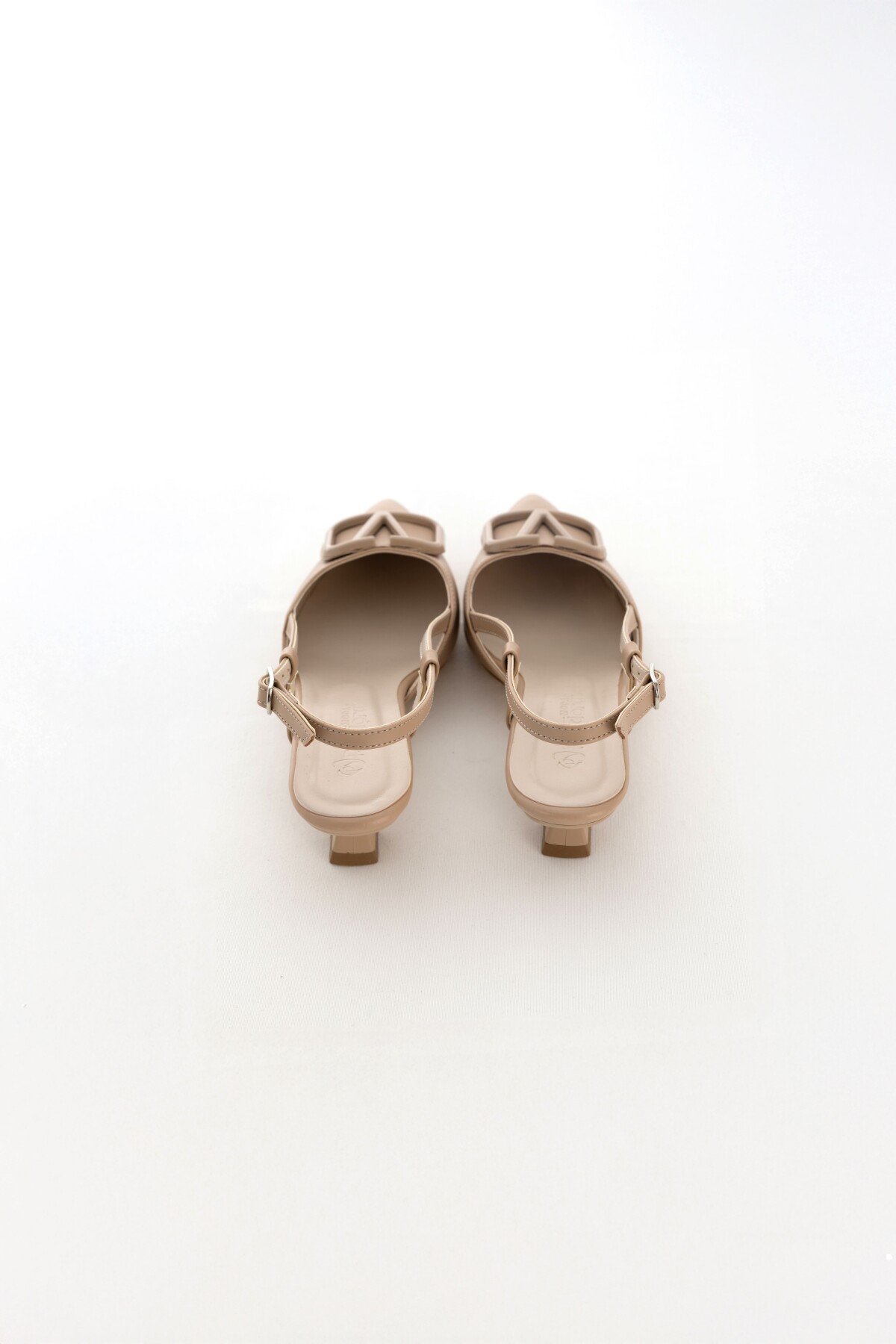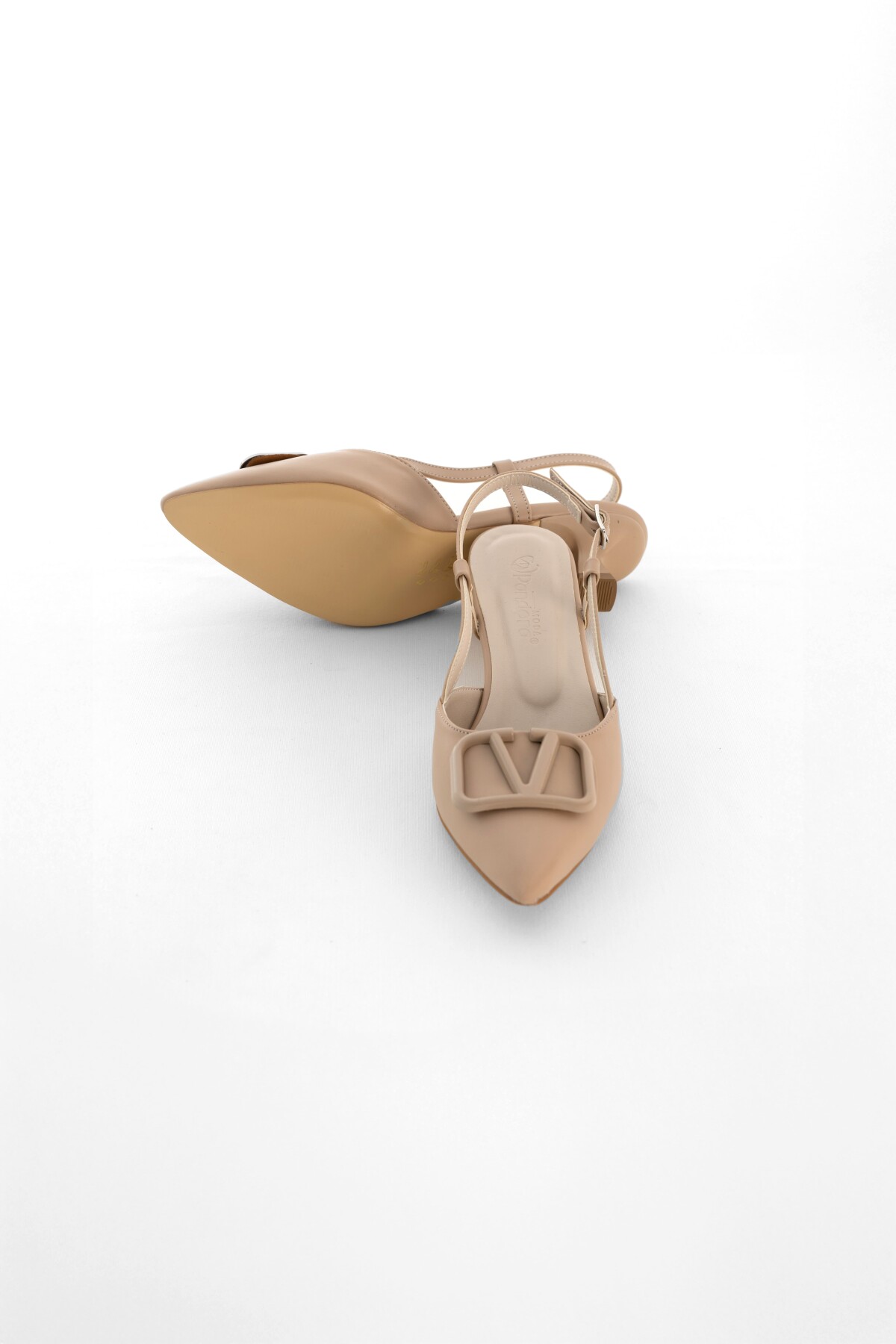 Zarafeti ve modern şıklığı bir araya getiren bu sivri burunlu ayakkabı, stilinize sofistike bir dokunuş katacak. Arkası açık tasarımı ve bilekten ayarlanabilir ince bandı, hem zarif bir görünüm sunar hem de konforlu bir kullanım sağlar. Sivri burun kesimi, bacak boyunu daha uzun göstererek feminen bir silüet yaratır. Ön kısmındaki büyük 'V' şeklindeki aksesuar, ayakkabıya lüks ve dikkat çekici bir hava katar. Düz tabanı ile gün boyu rahatlık sunan bu modeli, elbiselerden jean pantolonlara kadar birçok farklı kombinle kullanarak şıklığınızı tamamlayabilirsiniz.