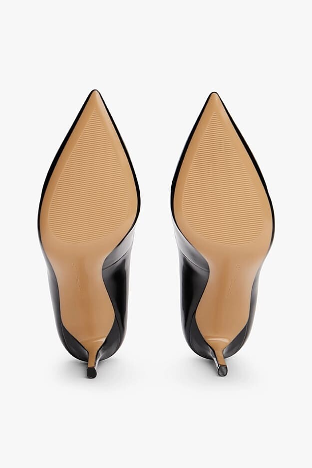 Zarafetin ve klasik şıklığın simgesi olan bu siyah stiletto, her kadının gardırobunda olması gereken zamansız bir parçadır. Sivri burun tasarımı ve ince topukları, bacak boyunu daha uzun göstererek zarif bir silüet yaratır. Parlak görünümü, hem ofis şıklığınıza hem de özel davet kombinlerinize lüks bir dokunuş katar. Yan kısmındaki minimalist metalik logosu ise tasarıma sofistike bir imza atıyor.