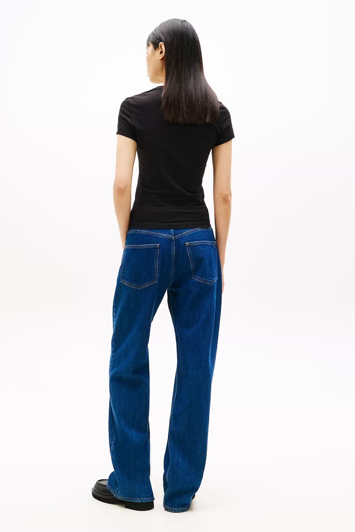 Siyahın zamansız şıklığını minimalist detaylarla birleştiren bu T-shirt, %100 pamuklu doğal dokusuyla gün boyu cildinize nefes aldırır. Göğüs kısmında yer alan ince yazı formundaki logo detayı, sade tasarıma zarif ve modern bir hava katar. Yumuşak tuşesi ve terletmeyen yapısı sayesinde konforlu bir kullanım sunar. İster jean pantolonlarla günlük kombinlerinizde, ister blazer ceketlerin içine giyerek ofis stilinizde rahatlıkla tercih edebileceğiniz çok yönlü bir parçadır.