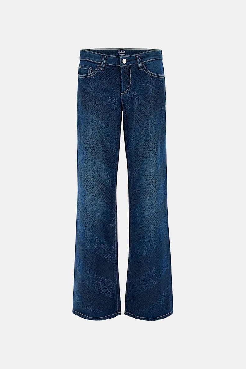 Göz alıcı bir stil ve modern bir silüet sunan bu jean pantolon, gardırobunuza ışıltı katmak için tasarlandı. Baştan aşağı parlak taşlarla işlenmiş monogram deseni, her hareketinizde ışığı yansıtarak size ihtişamlı bir görünüm kazandırır. Düşük belli ve konforlu geniş paça kesimi, hem rahatlığı hem de trend bir duruşu bir araya getirir. Pamuk ve liyosel karışımlı yumuşak kumaşıyla konfor sunan bu parça, özel davetlerden şehirdeki şık günlerinize kadar her an için iddialı bir seçimdir.