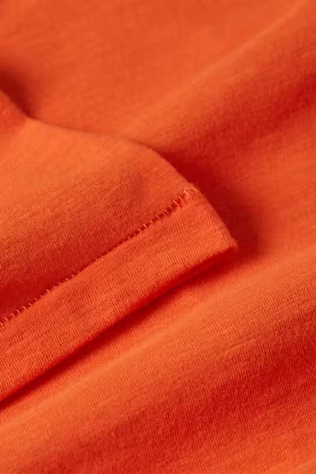 Kadın Slub Crop V-Neck Kısa Kollu T-Shirt - Turuncu
