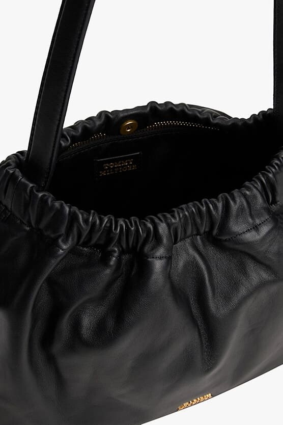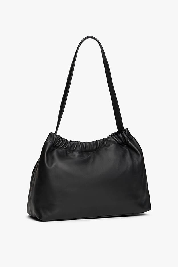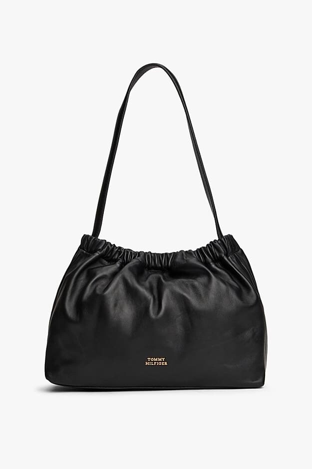 Siyahın zamansız şıklığını yumuşak deri dokusuyla buluşturan bu Soft Leather omuz çantası, modern ve sofistike bir stil sunuyor. Çantanın ağız kısmındaki belirgin büzgü detayları, tasarıma hacimli ve akıcı bir form kazandırırken; pürüzsüz napa derisi kaliteyi her dokunuşta hissettiriyor. 34 cm genişliğindeki ideal boyutu, günlük eşyalarınızı rahatça taşımanız için geniş bir alan sunar. Alt kısımda yer alan minimal gold renkli metal logo ve askı bağlantı halkaları ile zenginleştirilen bu tasarım, omzunuzda konforla taşıyabileceğiniz, hem iş hem de sosyal yaşamınız için mükemmel bir tamamlayıcıdır.