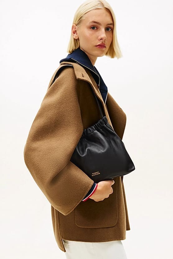 Detaylar: Ağız kısmında büzgü detayı, ön alt kısımda gold metal logo, tek omuz askısı
