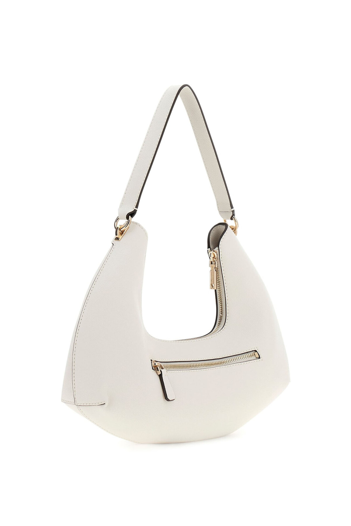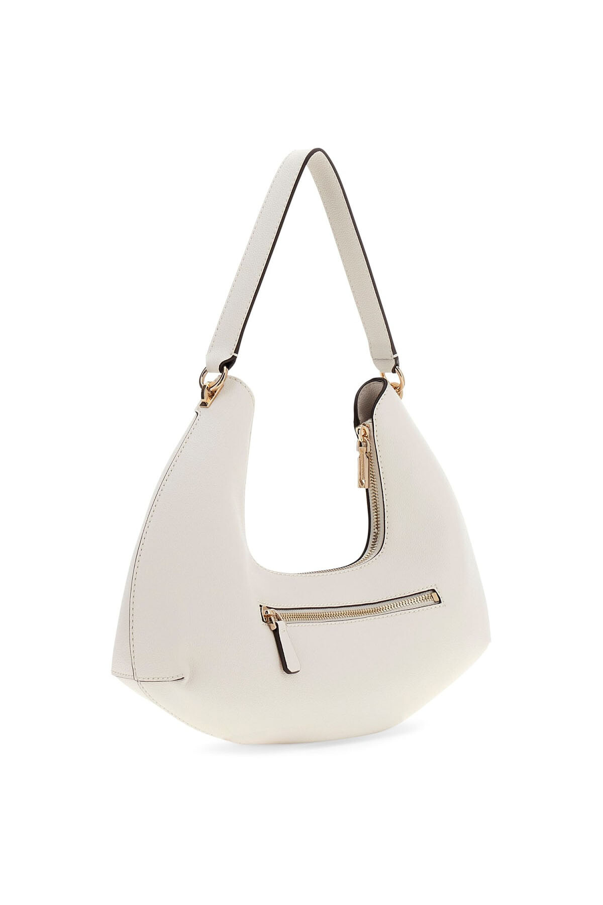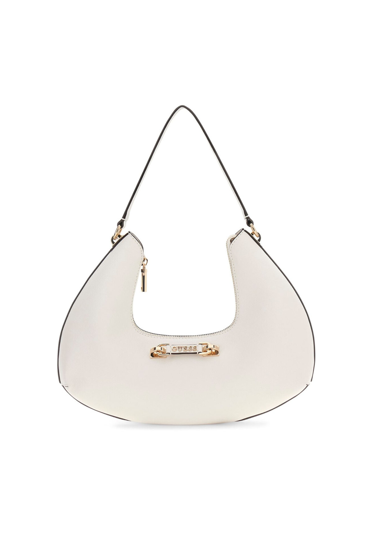 Guess aksesuar koleksiyonunun modern ve cesur tasarım çizgisini yansıtan Sophia omuz çantası, özgün kavisli formu ve deri görünümlü dokulu yüzeyiyle stilinize iddialı bir dokunuş katıyor. Beyazın (Off White) ferahlığını altın renkli metal detaylarla buluşturan bu model, hem günlük şehir şıklığında hem de akşam davetlerinde premium bir duruş sergiler.