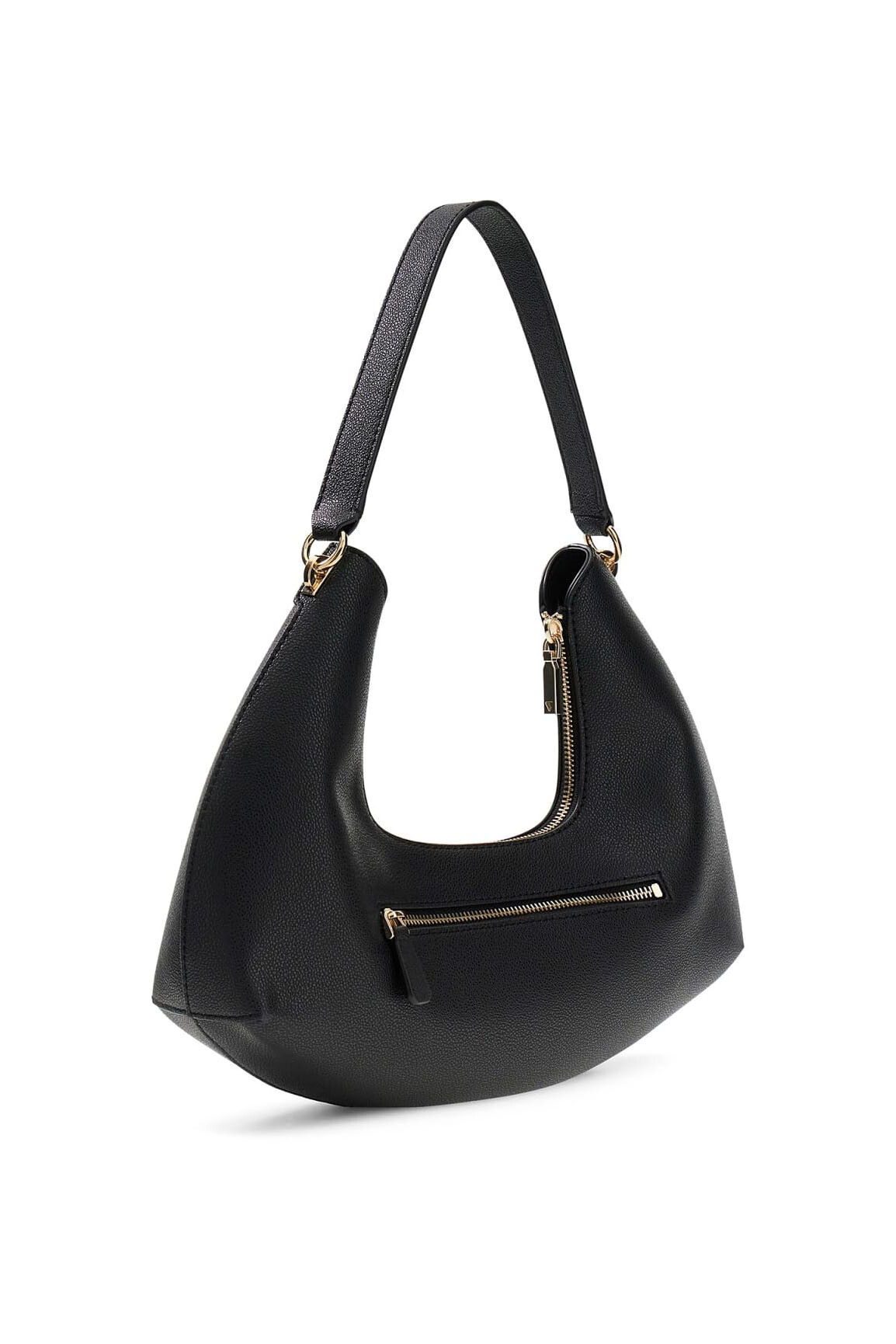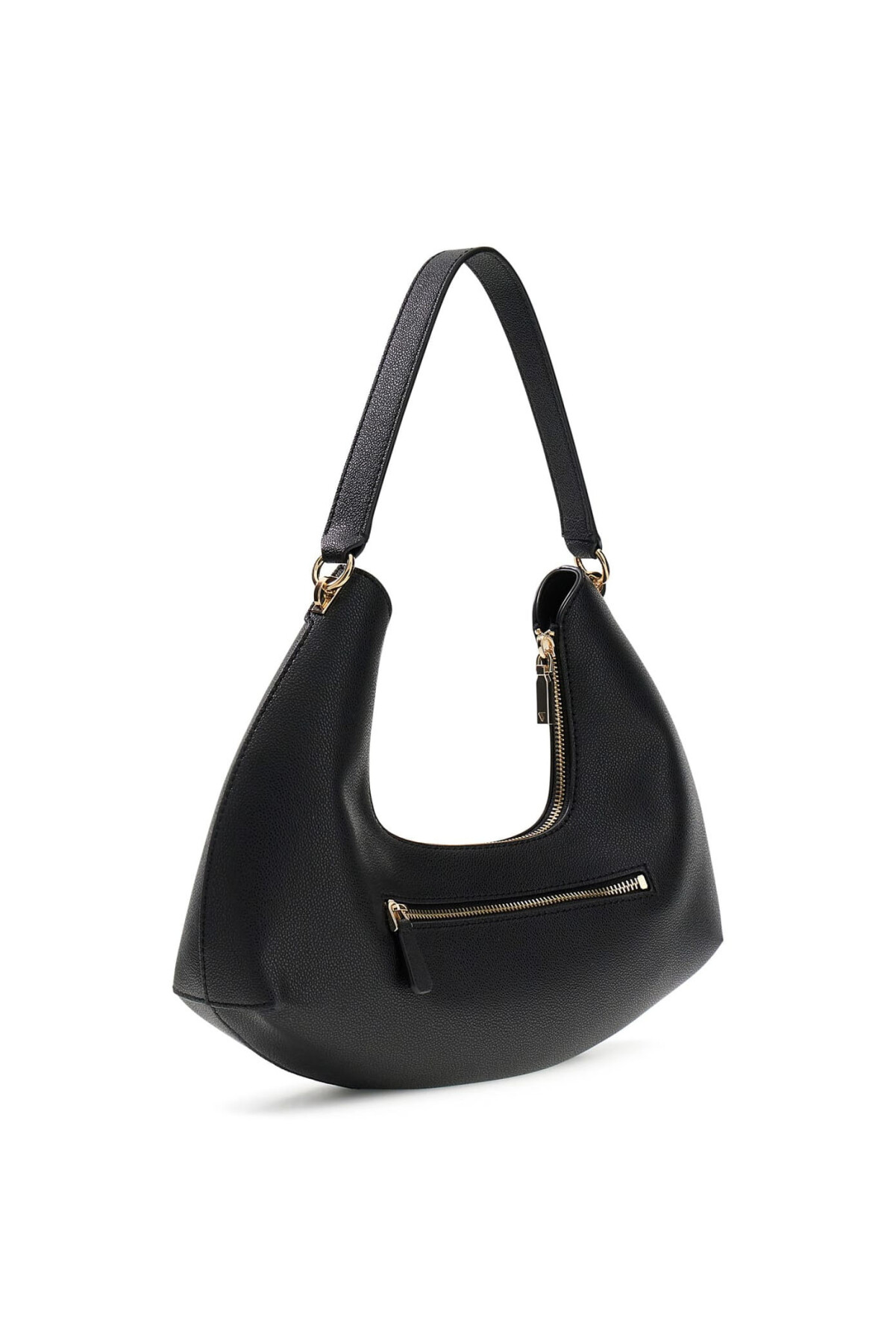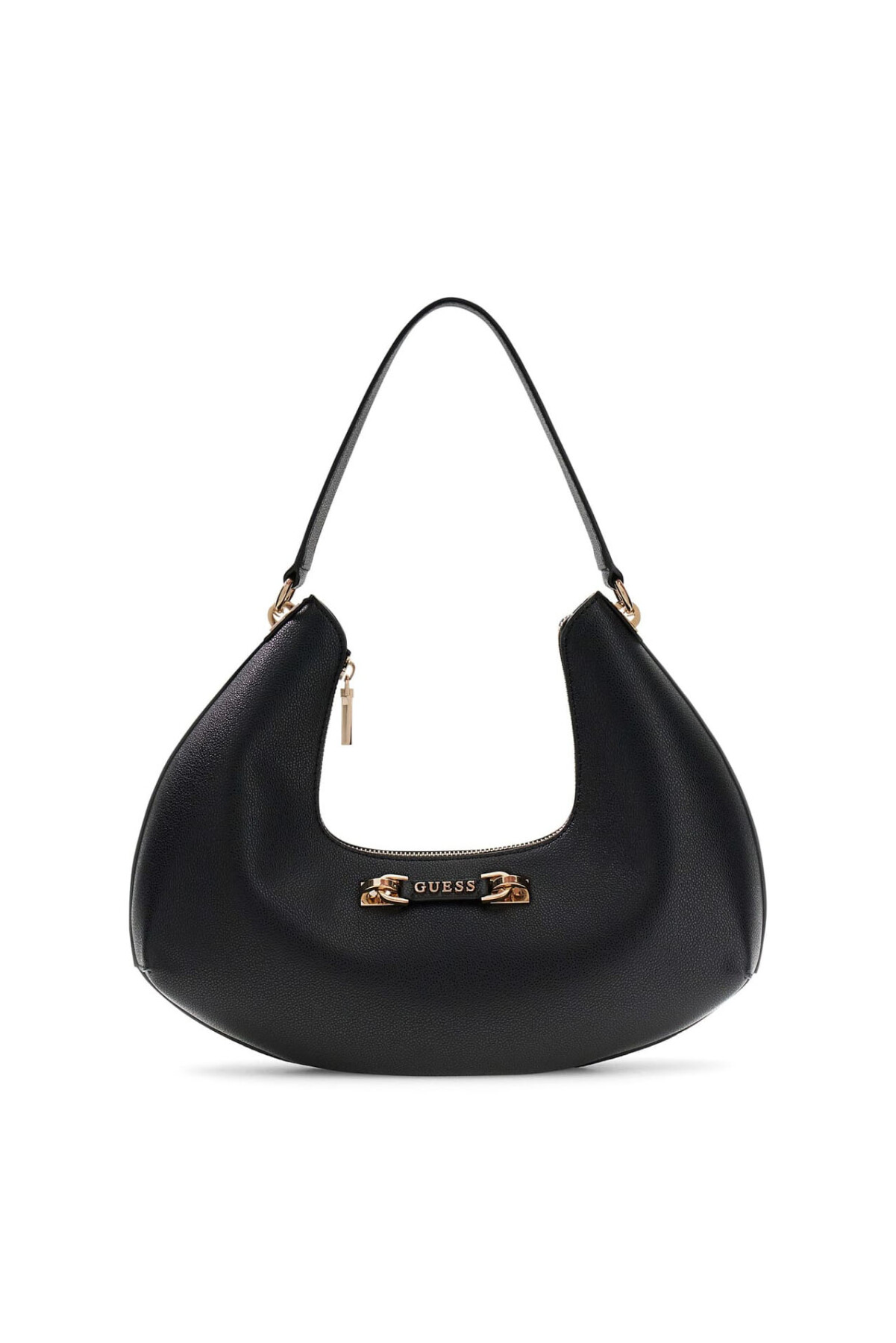 Guess aksesuar koleksiyonunun modern ve cesur tasarım çizgisini yansıtan Sophia omuz çantası, özgün kavisli formu ve deri görünümlü dokulu yüzeyiyle stilinize iddialı bir dokunuş katıyor. Siyahın zamansız asaletini altın renkli metal detaylarla buluşturan bu model, hem günlük şehir şıklığında hem de akşam davetlerinde premium bir duruş sergiler.
