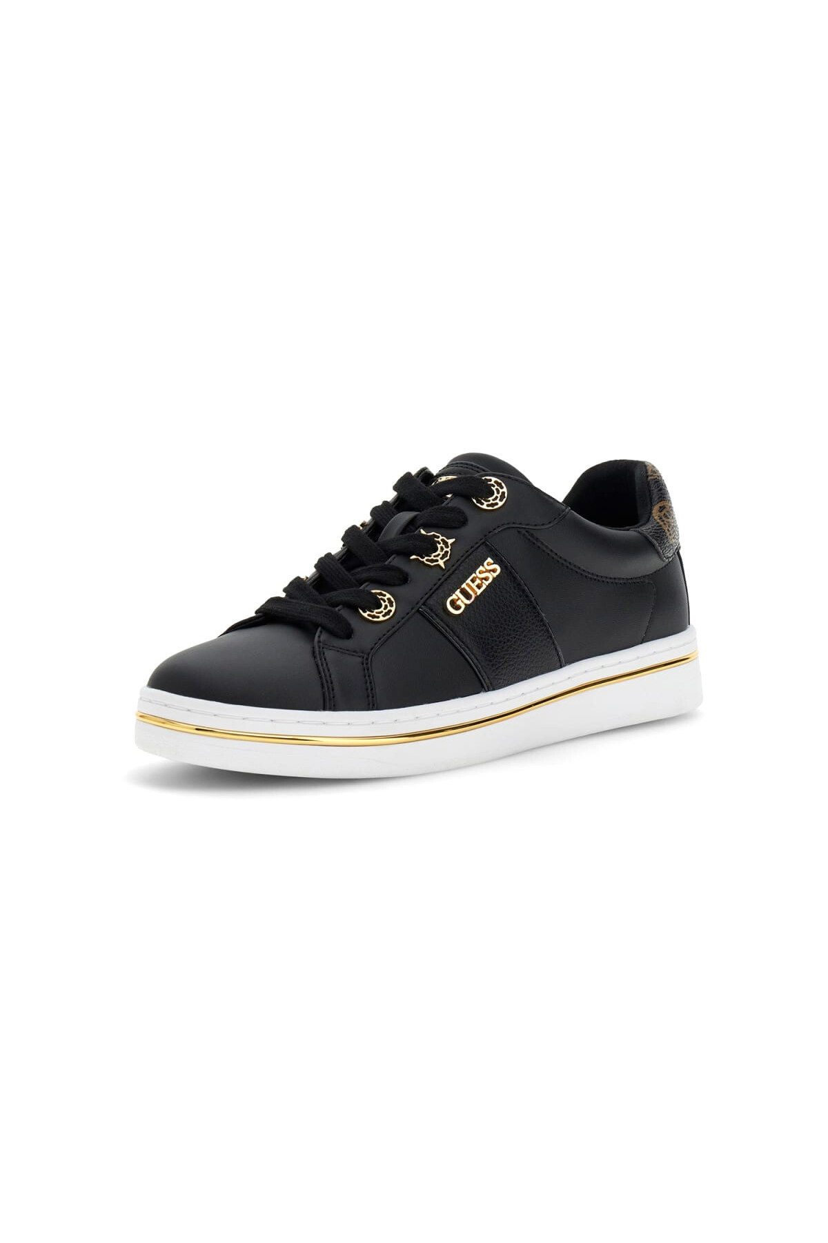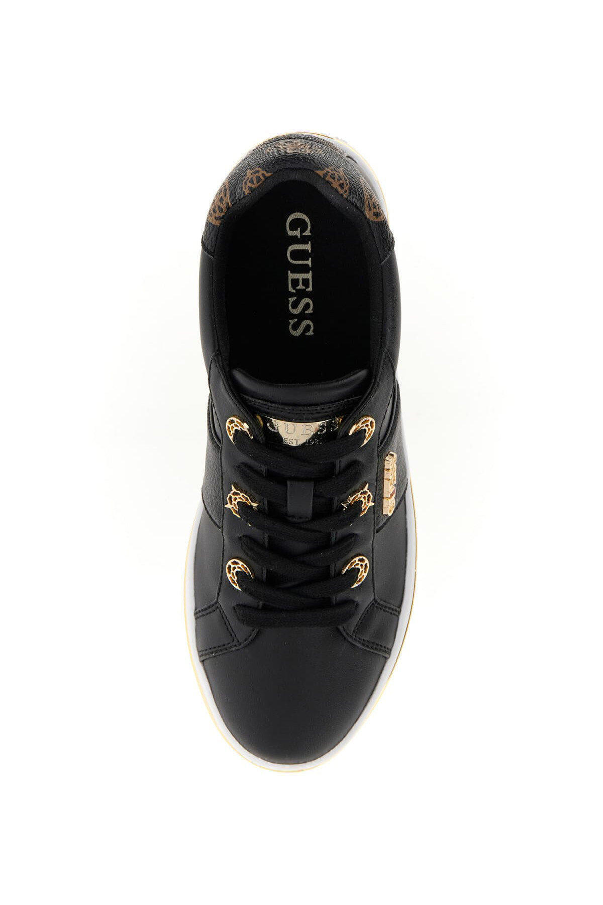 Siyah rengin asaletini, altın rengi metal detayların lüks ışıltısıyla buluşturan Stew sneaker, günlük spor şıklığınıza sofistike bir yorum getiriyor. %100 poliüretan malzemeden üretilen bu cupsole model; pürüzsüz ve hafif dokulu yüzeylerin kombinasyonuyla dinamik bir tasarım sunuyor. Ayakkabının topuk kısmında yer alan kahverengi tonlarındaki ikonik monogram desen detayı, simsiyah gövdeye zarif bir kontrast katarken; yan kısımdaki altın rengi metal yazı ve bağcık kapsülleri tasarıma mücevher ışıltısı ekliyor. 3,1 cm yüksekliğindeki beyaz taban, çevresini saran ince altın şerit ile hem konforlu bir adım deneyimi sunuyor hem de stilinizi yerden yükseltiyor.